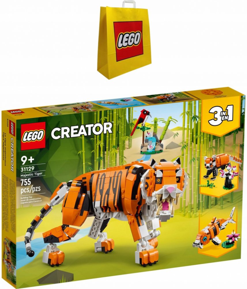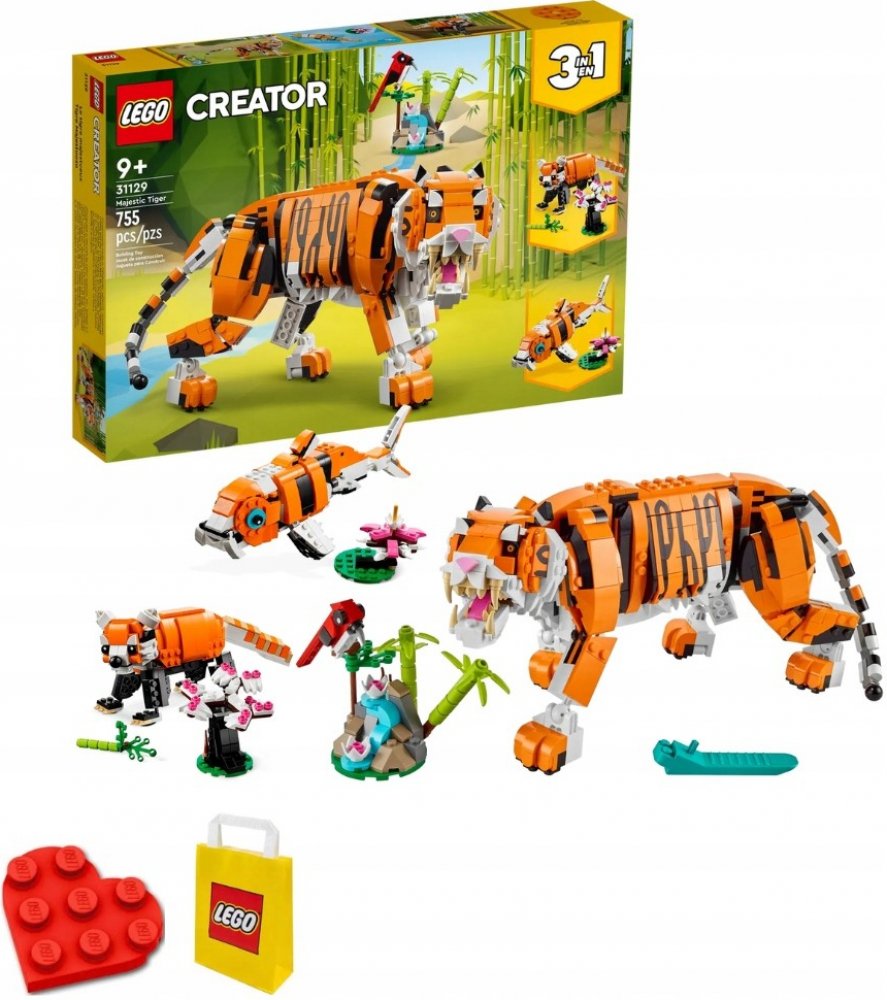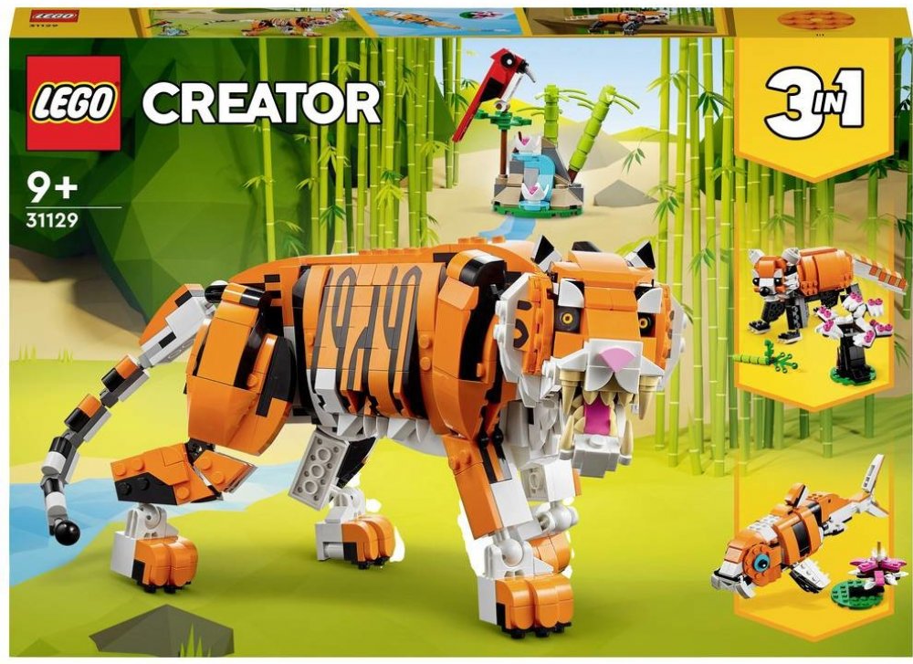 Součástí stavebnice je interaktivní digitální návod, se kterým bude stavění ještě zábavnější. Nástroje přibližování a otáčení, které jsou k dispozici v bezplatné aplikaci s návody na stavění LEGO pro chytré telefony a tablety, dětem pomohou vizualizovat si model, zatímco na něm pracují. 3 modely zvířat v 1 krabici – se stavebnicí Majestátní tygr (31129) čeká milovníky kostek LEGO® množství dobrodružství s modely tygra, pandy a kapra koi