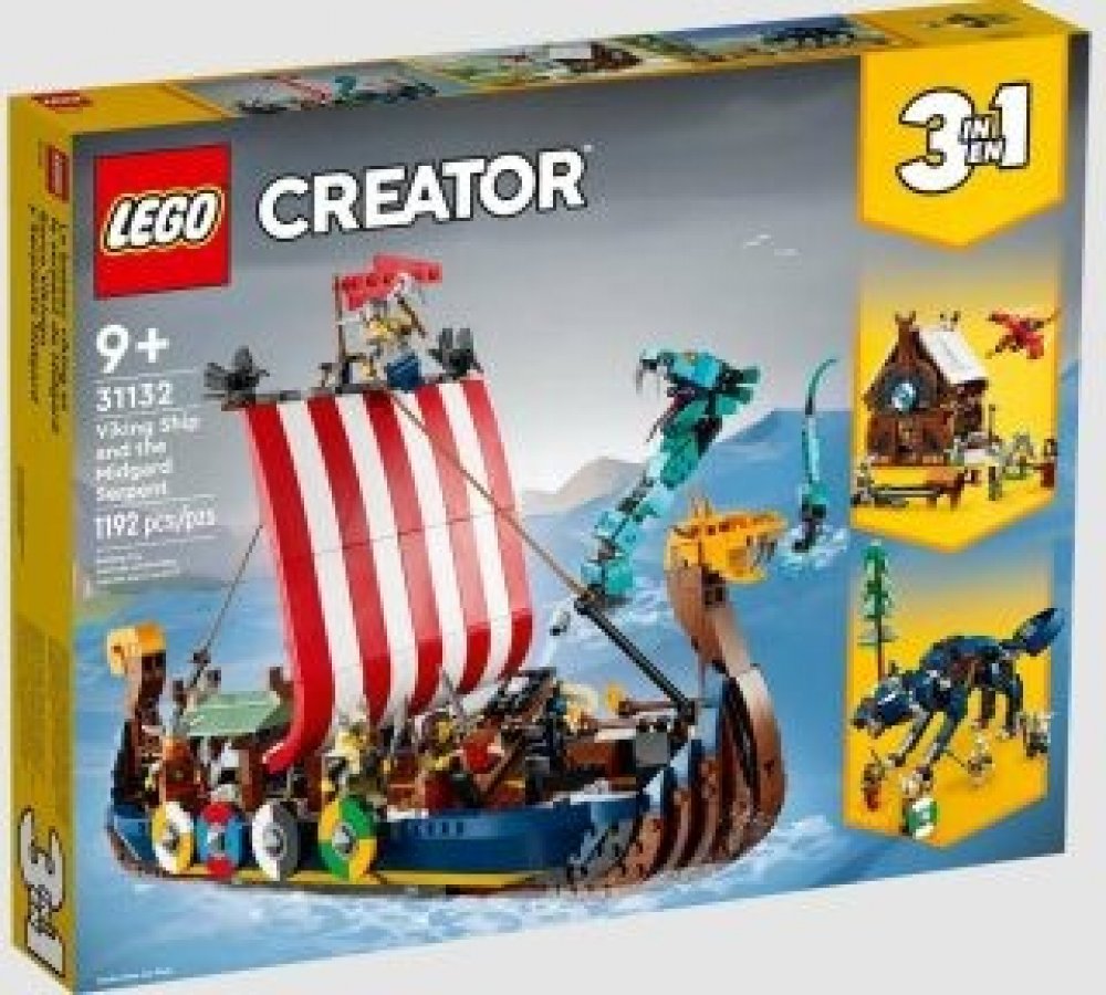 LEGO® Creator™ 3v1 9 let 1192 ks plavidla Creator 3v1 pro kluky LEGO® 2022 S pomocí Celý víkend Jen opatrně 3 různé modely (3v1) 42 × 17 × 27 cm Vikingové vícebarevná 4 ks