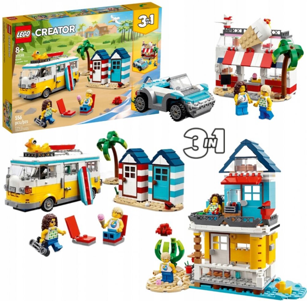 Obytný vůz na pláži Děti ve věku od osmi let budou hrátć plážové scény baví LEGO® Creator 3-v-1 Beach Camper (31138). Součástí je obtní vůz s kuchyňkouą a spálni jsou odnímatelnou střechou, otevírací stranou a 2 minifigurkami. Celý komplementární Pozoruje dvě plážové chatky, palmu, blokovou surfovou prkno, dvě lehátka a albatrosa. Kreativní hračka 3 v 1 S touto sadou 3 v 1 mohou fanoušci LEGO... vybratć jeden ze tří plážových modelů. Můzuą konstrukceć detailní plážový karavan se dvěma chatkami a palmami, před dvouúpatrovým domečkem na pláži nebo v mrazu s výdejním okénkem, terasou v patiu, stoly a super cool koupelnou. Aplikace LEGO Builder Použijte novou funkci, která pomůže aplikaci LEGO Builder. Můžete si to přiblížit a otočitć modelovat ve 3D, uspořádatć soupravy a tratě příspěvky. Vlastnosti Tři modely v jedné krabici – LEGO® Creator 3-v-1 Beach Camper (31138) se známým autem, letním domem a mrazivým dnem a nocí vynalezenośvytvořenoć vtipné příběhy Dvě minifigurky – sada obsachuje figurky chlapců a dívek, které cestují obytné auto, žít ą ve dvouúpatrové letní chatě nebo si užít się lahůdky v prodejně zmrzliny Realistické detaily – známý vůz má śkuchyněę a ložnice, míček, přední sedadlo, otevírací boční dveře a otočné kolo Další modely – souprava je vybavena vozem pro dvě plážové chatky a palmou, letohrádek je malý a strmý a je doplněn mrazem; k dispozici je plážový kočárek Spousta příslušenství – V karavanu hodinky 2 cihlové surfové prkna, boombox a albatros, letní dům s lehátkem a kachnou a zmrzlinární. komplementární zmrzlina Zábavné stavění – Daddy 556dílná sad umožní využít dřevo v osmi různých modelech. Je to skvělý dárek pro mladého stavitele LEGO Sběratelský model – Karavan na pláži je 10 cm vysoký, 7 cm dlouhý a 18 cm široký. Během přestávek ve hře bude představovat a Krásnou ozdobuę dětský klid Help při stavbě – objevte intuitivní návody na stavění s LEGO® Builder, kde můžete přibližovat a odkládat a obracetć 3D modely, track postupovat a ukládat sady, při rozpoznání dovedností dítěte Vysoká kvalita – jiż postupně vyrábíme další LEGO® aby se daly „snadno oddělit“. Záruka bezpečnosti – Stavební kostky LEGO® stoą nejvyšší světové bezpečnostní standardy