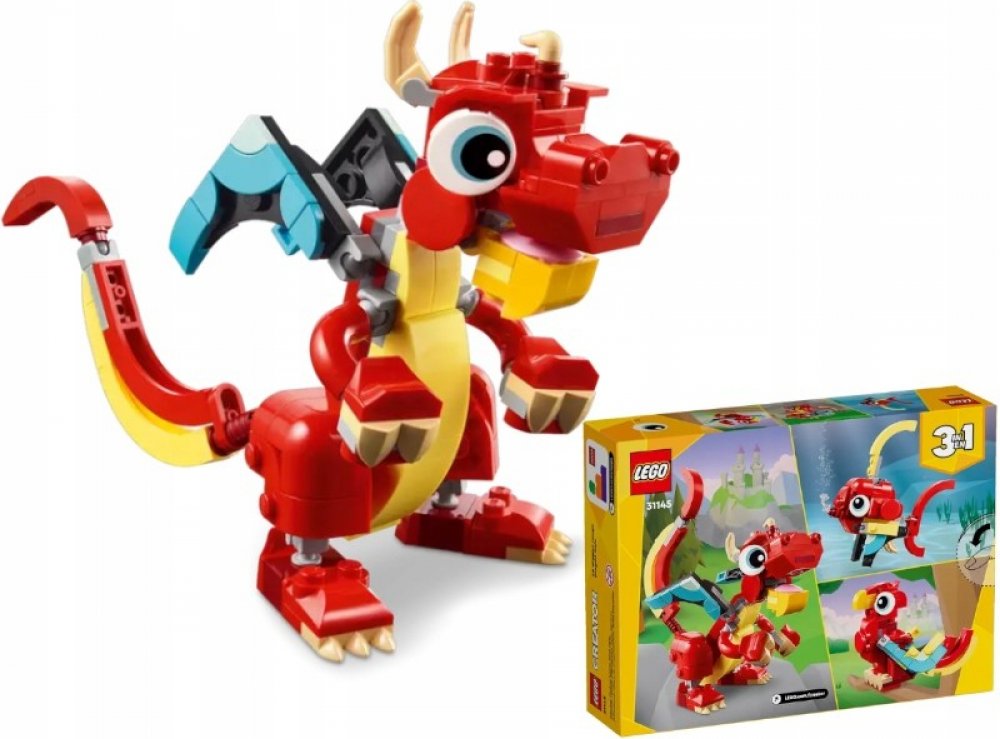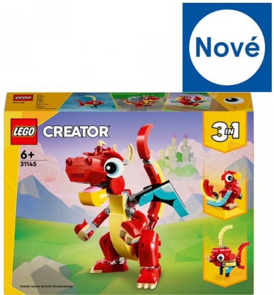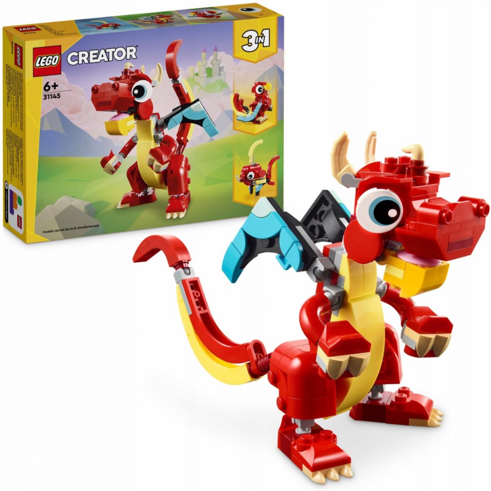LEGO® Creator 3 v 1 31145 Červený drak je perfektním dárkem pro každého malého fanouška stavění. Díky možnosti přestavby přináší hodiny kreativní zábavy a inspiruje k tvorbě dalších úžasných modelů. LEGO® stavebnice Creator 3 v 1 nabízí širokou škálu setů s tématy, která osloví každé dítě, ať už má rádo rychlá auta, majestátní zvířata nebo detailně propracované městské scény. Každý model lze snadno rozebrat a přetvořit v nový, což znamená nekonečné možnosti hry a nikdy nekončící dobrodružství. S LEGO® Creator 3 v 1 si děti vytvoří svět plný fantazie, ve kterém se mohou stát staviteli neomezených možností.