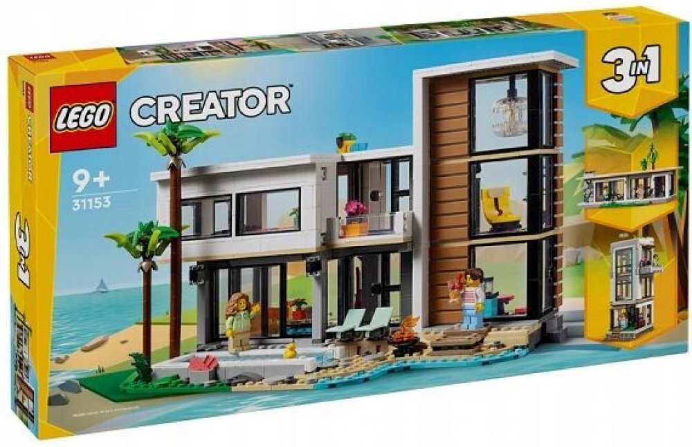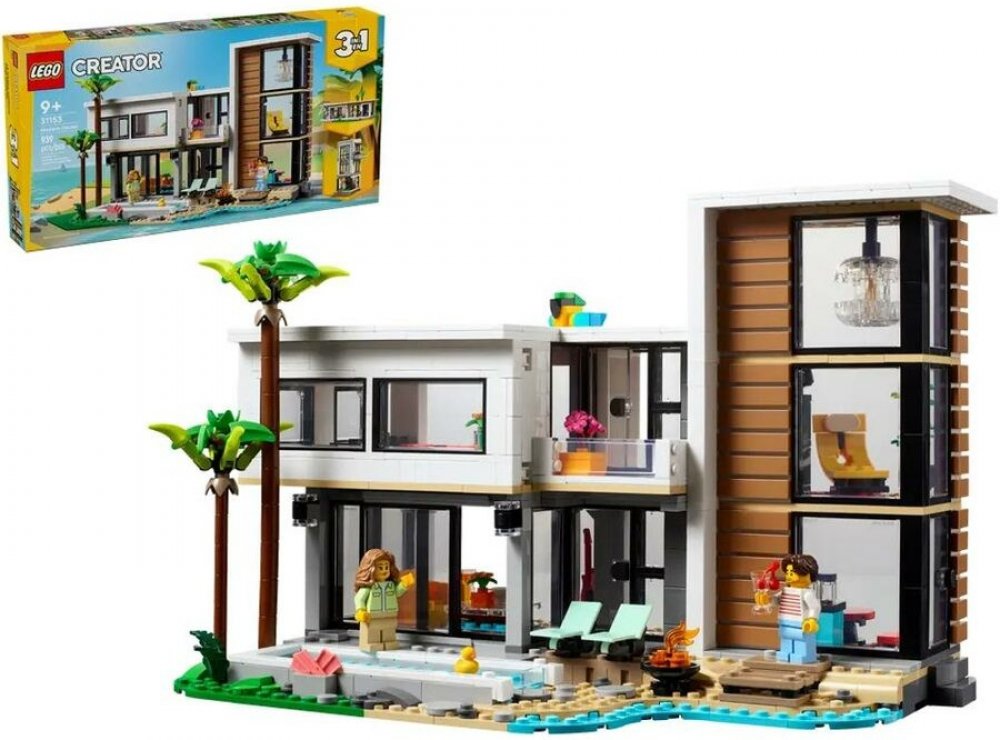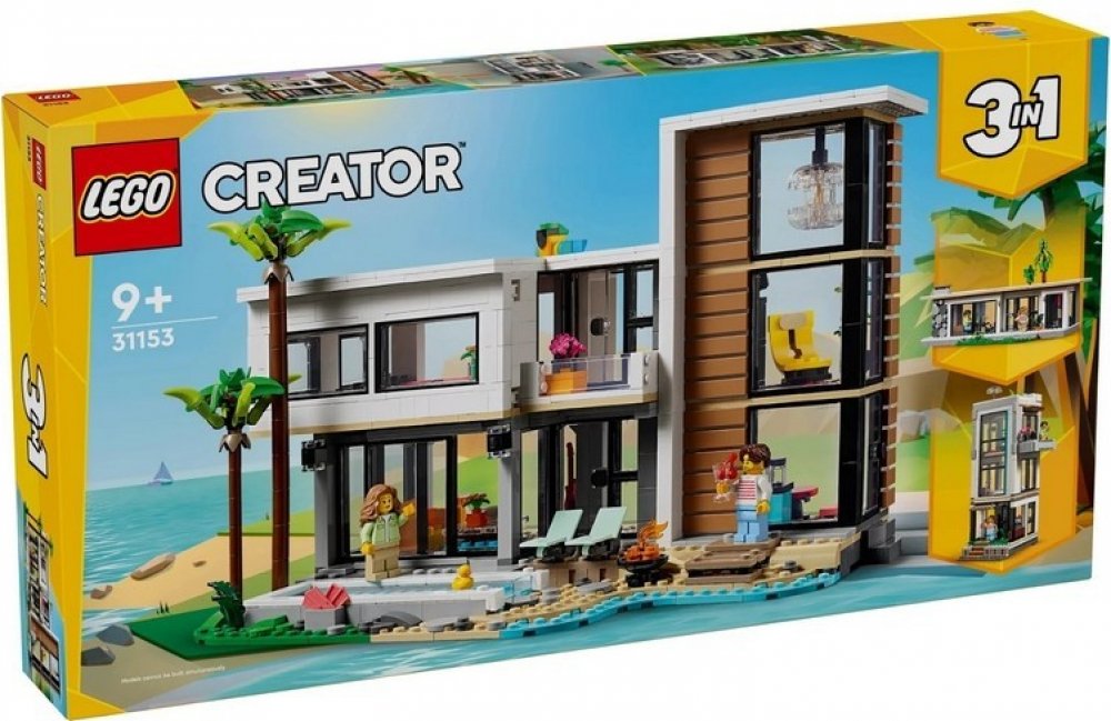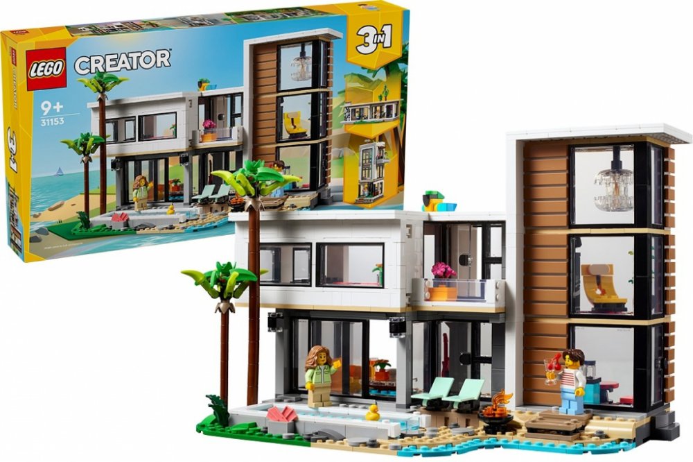 - 3 modely domečků v 1 stavebnici – Se stavebnicí LEGO® Creator 3 v 1 Moderní dům se děti od 9 let ponoří do stavění a přestavování 3 propracovaných modelů domků z jedné sady kostek