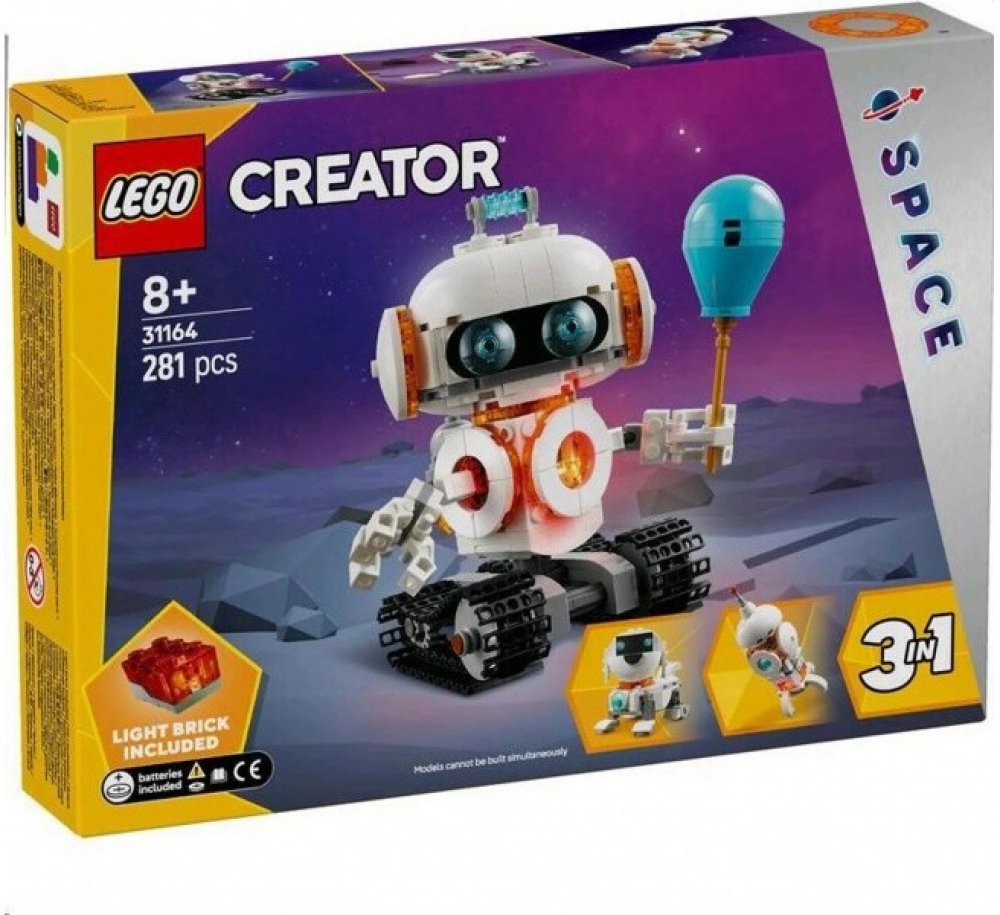 LEGO 31164 - Vesmírný robot na baterie z produktové řady LEGO CREATOR. Dětská plastová stavebnice v krabici. 3in1. Hračka na baterie, se světlem.