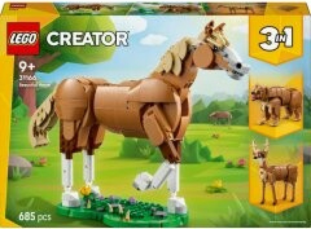Milovníky zvířat se stavebnicí LEGO® Creator 3 v 1 Krásný kůň čekají zábavné příběhy a pak model přestaví na srnce nebo medvěda.