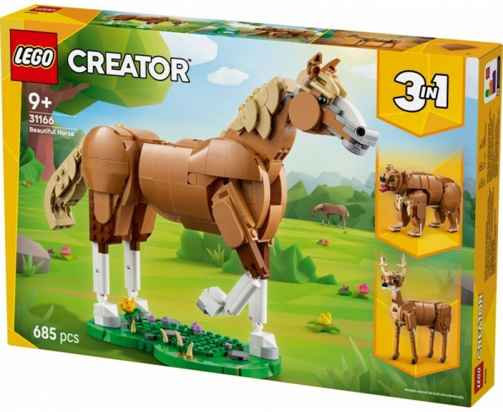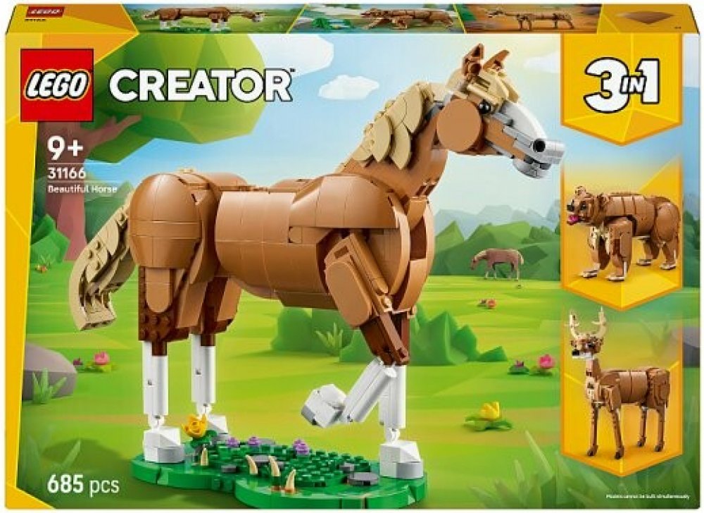 Holky a kluci od 9 let, kteří milují zvířata, čekají hodiny zábavných příběhů se stavebnicí Krásný kůň (31166). Tento pohyblivý kůň dokáže pohybovat hlavou, krkem, boky, kopyty, ocasem a jedním kolenem a je umístěný na podložce s efektem trávy, na které si ho děti můžou vystavit ve 3 různých polohách: vestoje na 3 nebo 4 nohách, nebo na 2 zadních nohách.