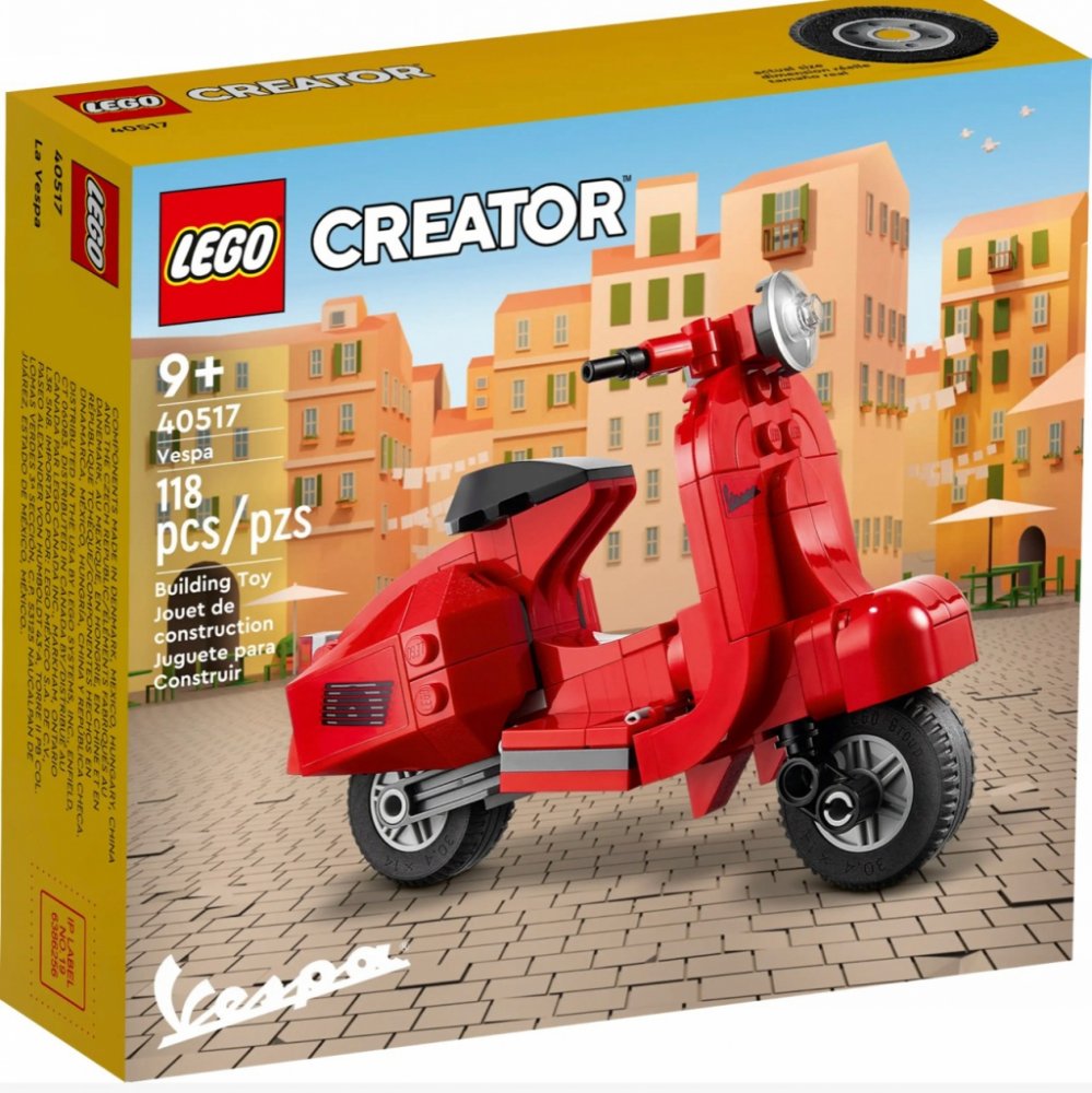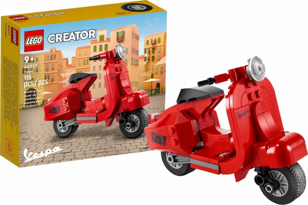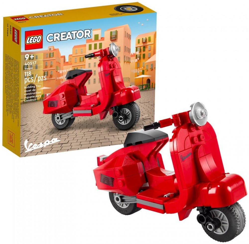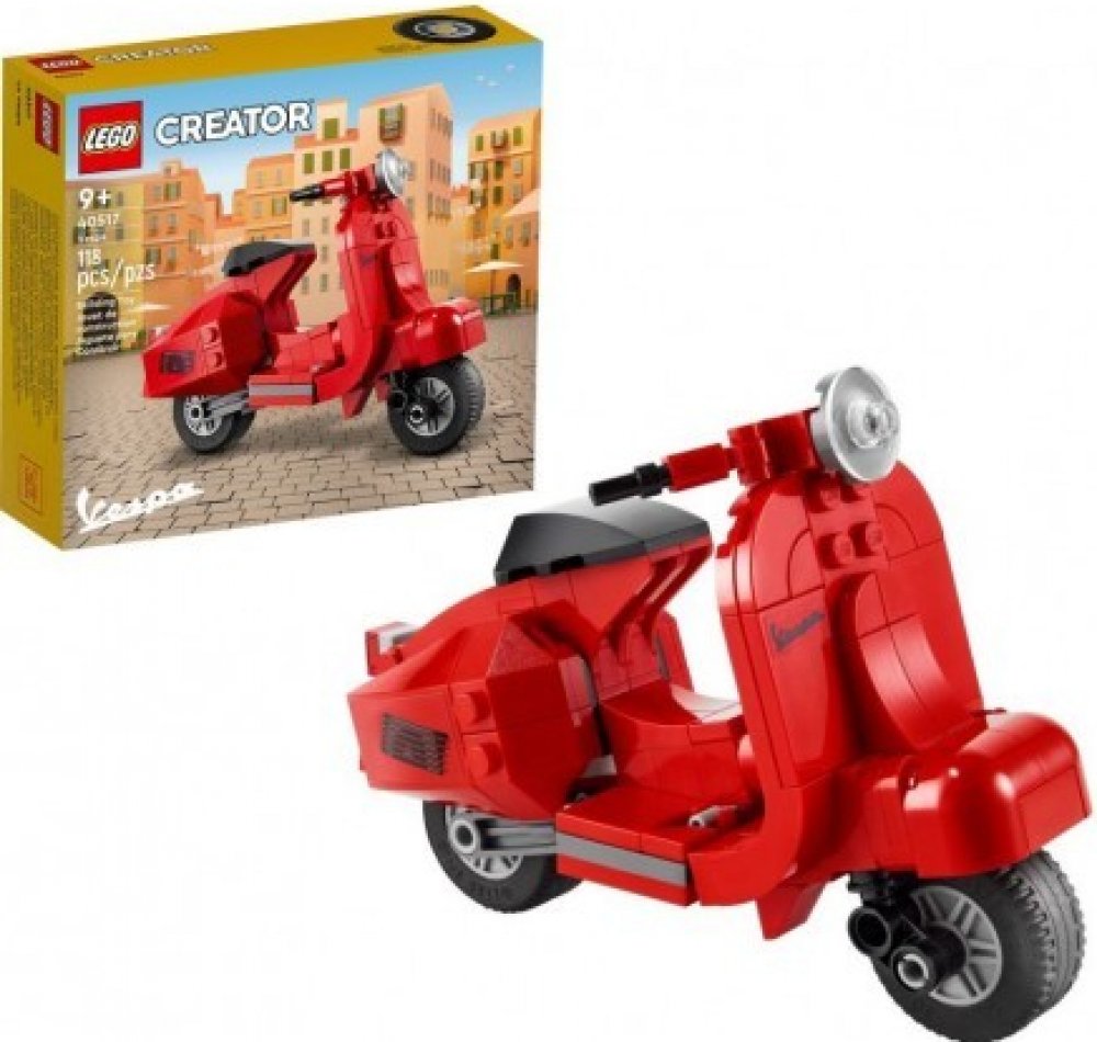 Děti mohou brázdit ulice s tímto úžasným modelem kultovního skútru značky Vespa (40517). Výrazně červená Vespa přináší řadu nezaměnitelných detailů, včetně řídítek a sedačky. Jedná se o skvělý dárek pro fanoušky kostek LEGO® ve věku od 9 let, kteří zbožňují parádní vozidla.