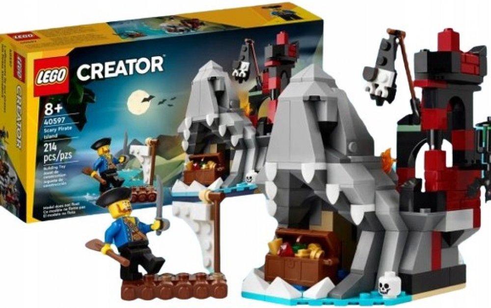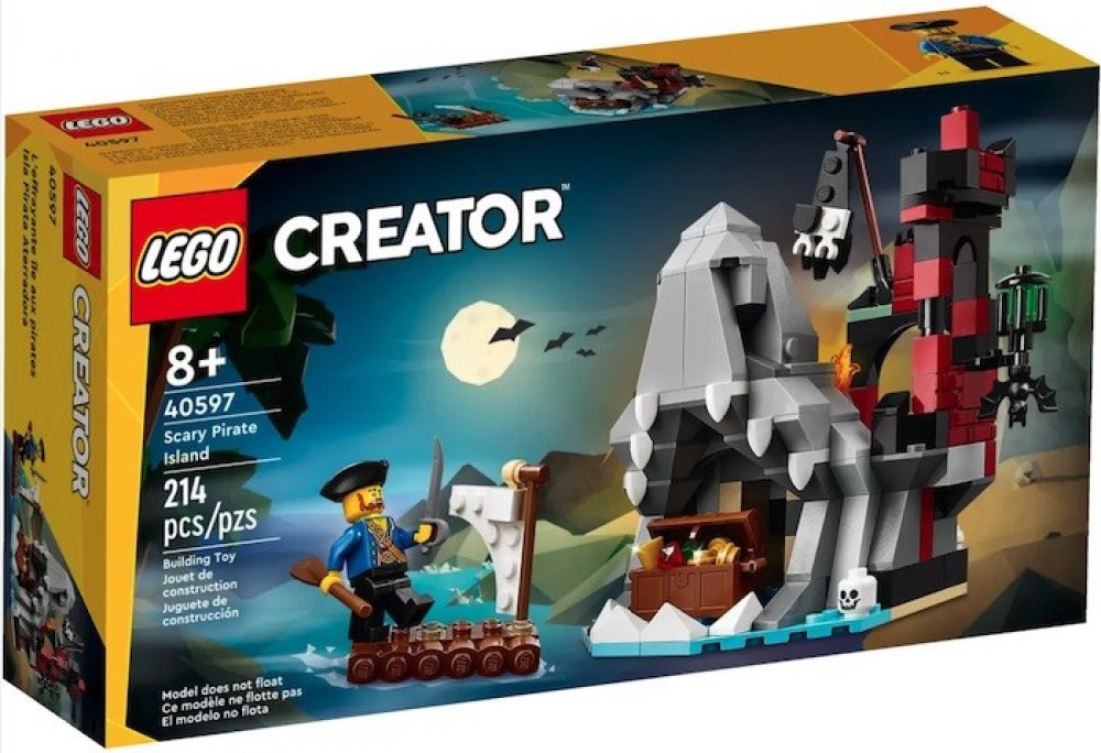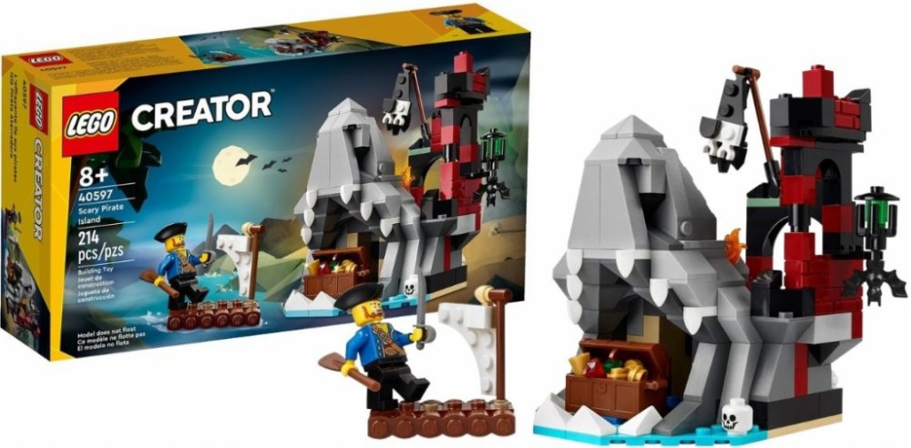 Fanoušci LEGO® si mohou v rámci oslav Halloweenu užít vlastní dobrodružství na Strašidelném pirátském ostrově (40597). Součástí ostrova je žraločí hlava, v jejíž tlamě se skrývá jeskyně, a děsivá zřícenina hradu se schodištěm. Průzkumníci mohou objevit truhlu plnou zlata a šperků, lebku a netopýra. Na voru se k ostrovu přibližuje pokladuchtivý pirát s pádlem a mečem. Ta...