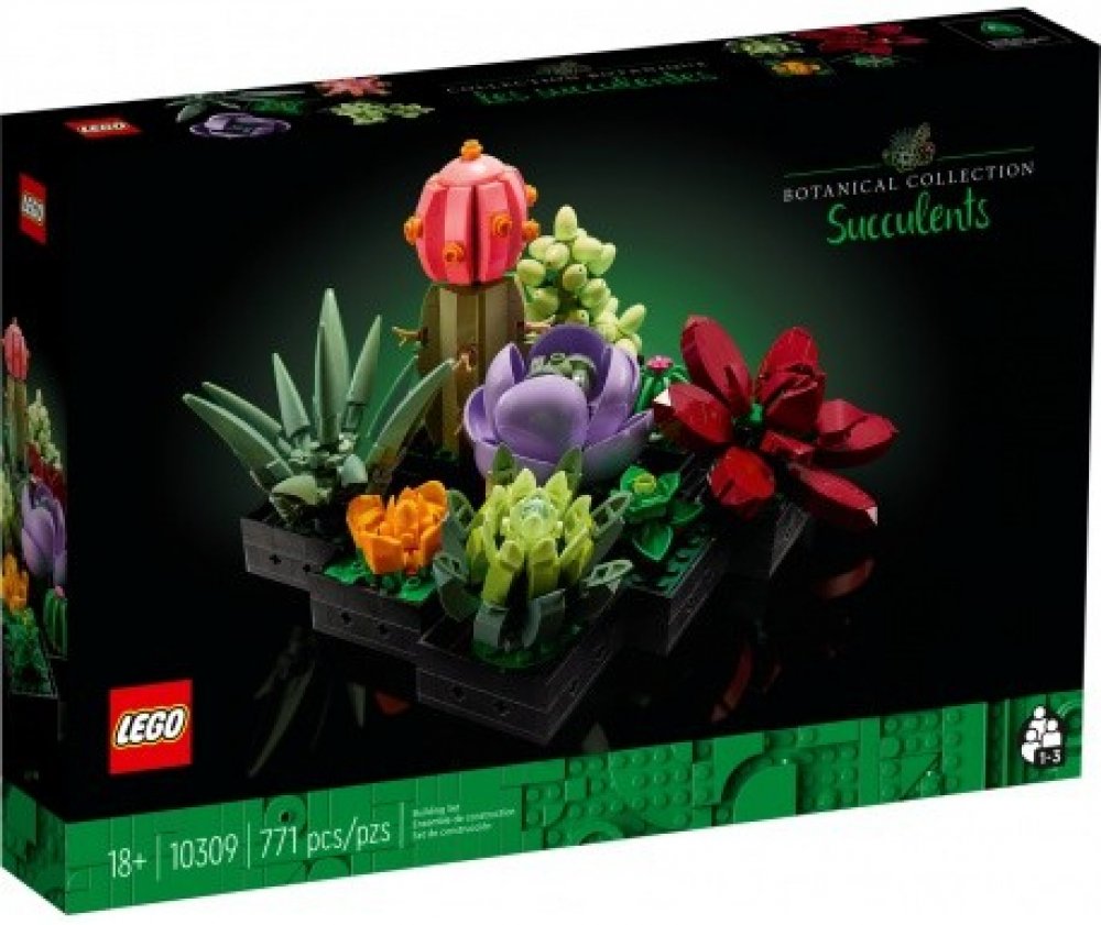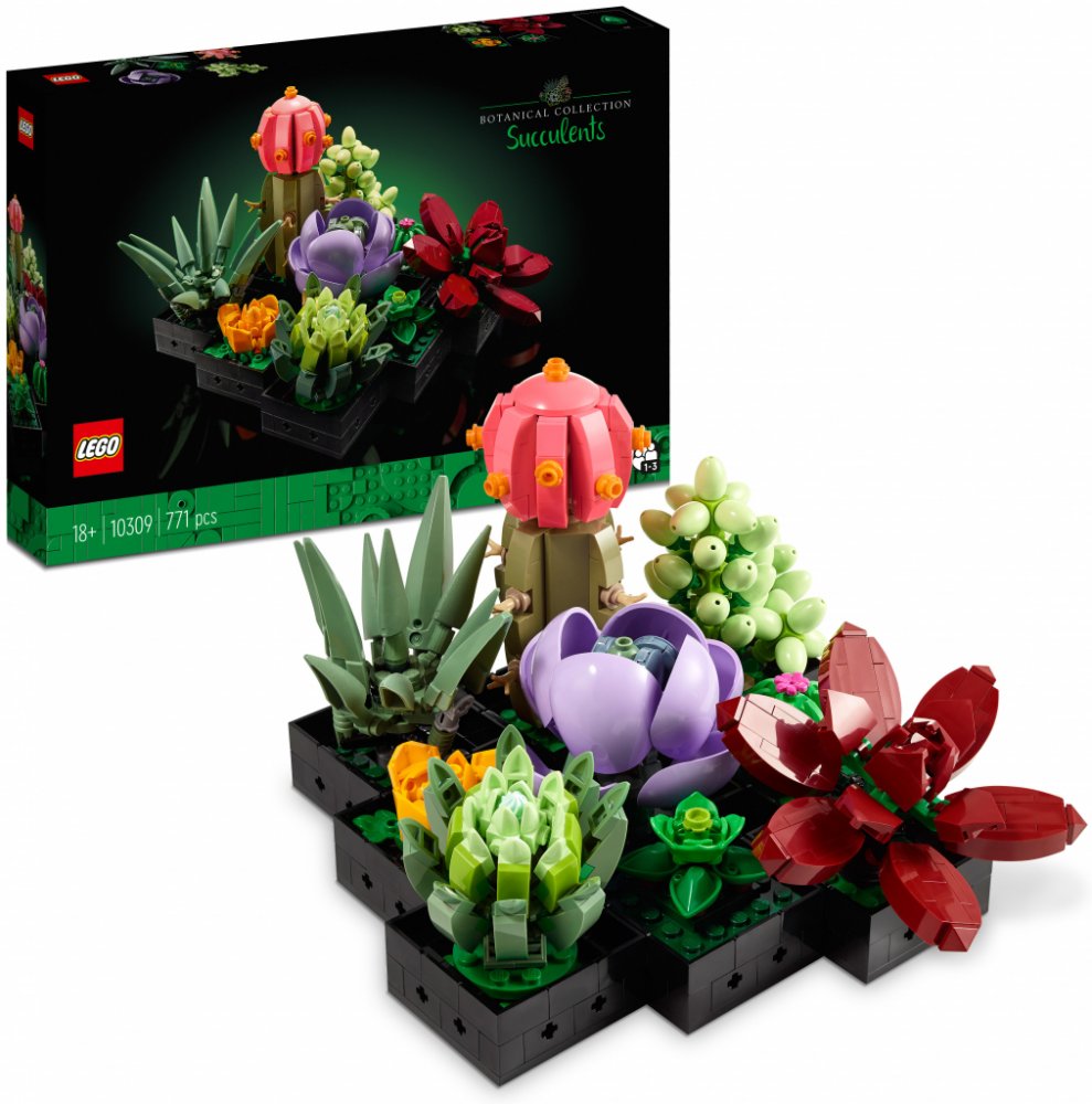 Vyrobte si vlastní sukulentní dekoraci – vytvořte zajímavý projekt se stavebnicí LEGO® Sukulenty (10309) s dekorativními sukulenty, které ozdobí váš domov nebo kancelář Postavte devět různých rostlin – umístěte rostliny vedle navzájem, v malých skupinách nebo samostatně, abyste si vytvořili své vlastní jedinečné dekorace pro váš domov, pokoj nebo kancelář Inspirováno skutečnými sukulenty – každá rostlina byla pečlivě navržena tak, aby připomínala skutečné sukulenty.