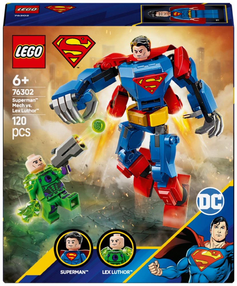 Stavebnice Superman v robotickém obleku vs. Lex Luthor je výjimečná sada LEGO DC s robotickým oblekem navržená pro fanoušky akčních superhrdinů a kreativních dobrodružství od 6 let. Tato stavebnice LEGO DC Superman obsahuje 2 minifigurky: Supermana s látkovým pláštěm a otočnou hlavou s alternativními výrazy a Lexe Luthora s vystřelovačem a krystalem kryptonitu. Sestavitelný robot má pohyblivé ruce, nohy a prsty. Trup lze otevřít a odhalit tak kokpit, do kterého můžete posadit minifigurku Supermana. Na zádech robotického obleku najdete 2 nastavitelné trysky, které robotickému obleku umožňují „létat“. Stavitelé můžou přibližovat a otáčet modely ve 3D a sledovat svůj pokrok pomocí zábavné a intuitivní aplikace LEGO Builder pro ještě větší porci digitální zábavy.