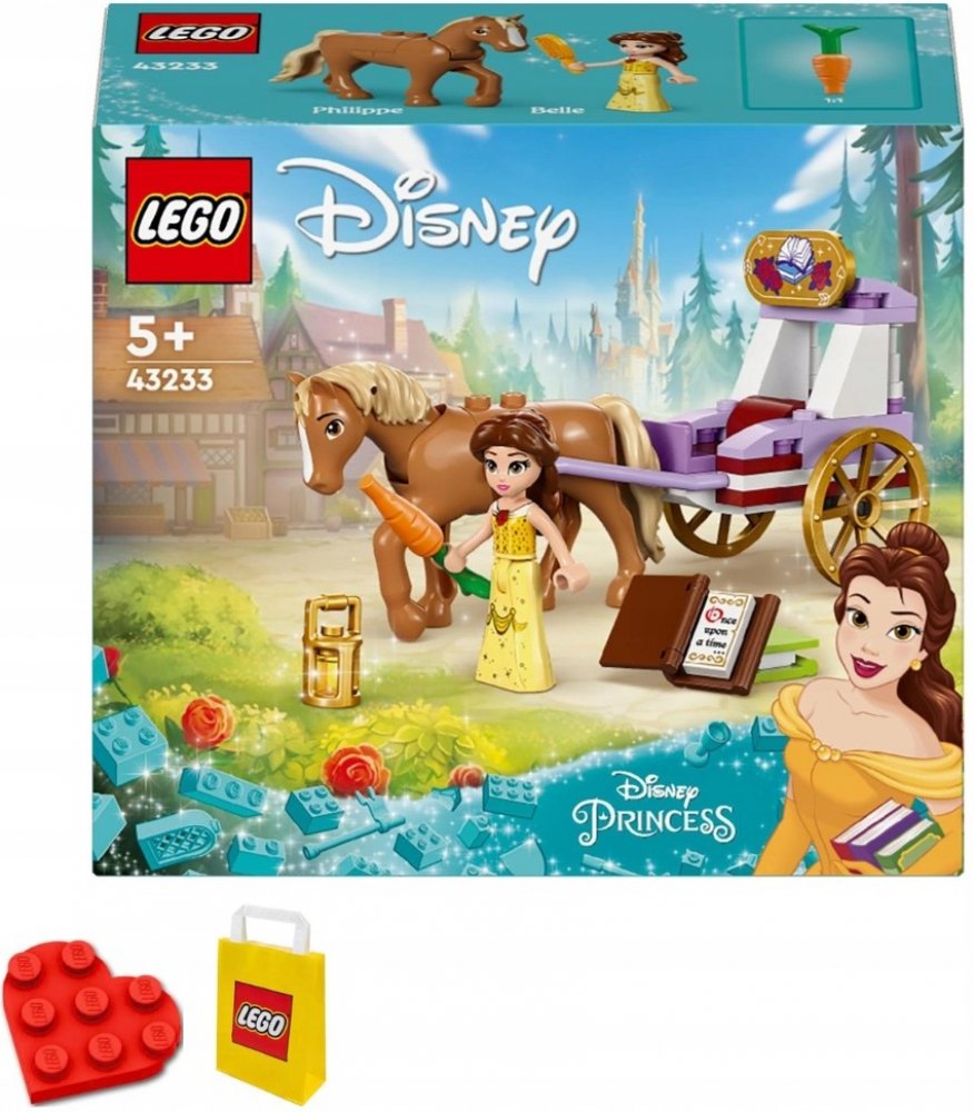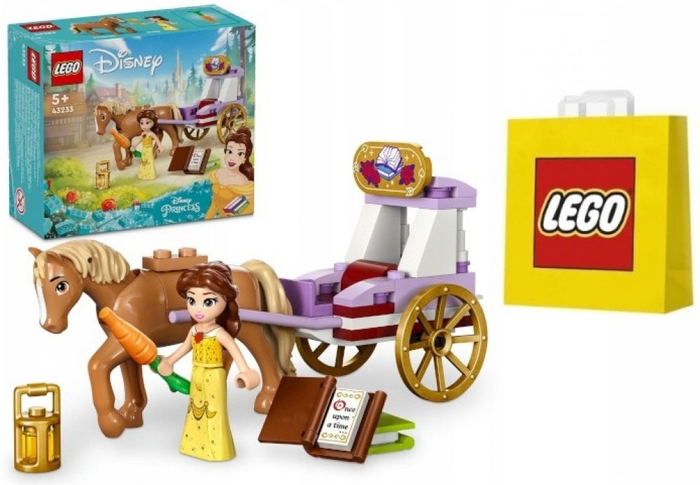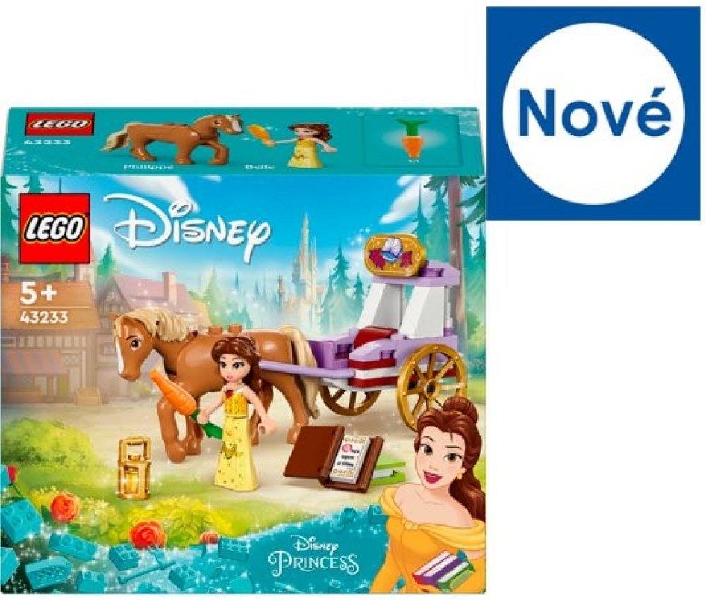 LEGO 43233 - Bella a pohádkový kočár s koníkem z produktové řady LEGO DISNEY PRINCESS - Dětské plastové kostky v krabici.