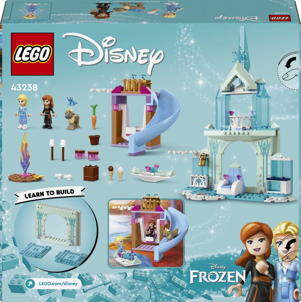 Balení obsahuje model hradu, minifigurky Elsy a Anny, figurky zvířátek (Bruni a mládě soba) a stavební dílky. Ke stavění můžete použít i digitální 3D návod v aplikaci LEGO Builder.