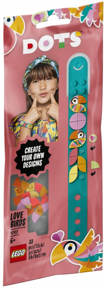 - Povzbuďte lásku k tvoření svého dítěte s roztomilou sadou LEGO® DOTS™ Náramek – ptačí zpěv (41912), ve které najdete nastavitelný náramek a 32 pestrobarevných zdobítek. Stačí vybalit dílky z krabice a zdobení může začít!