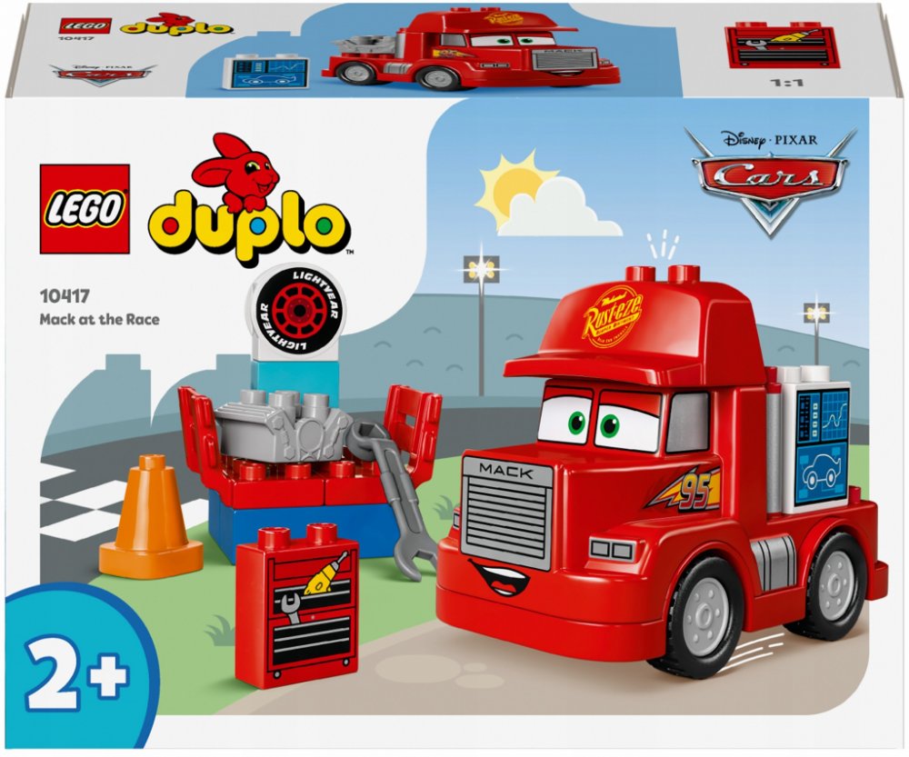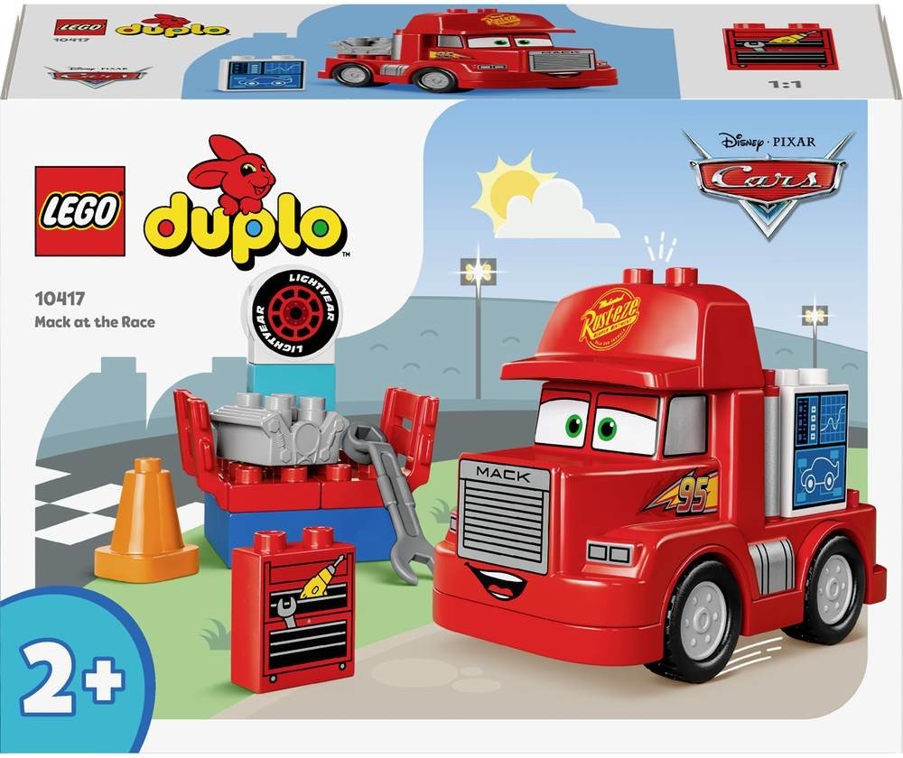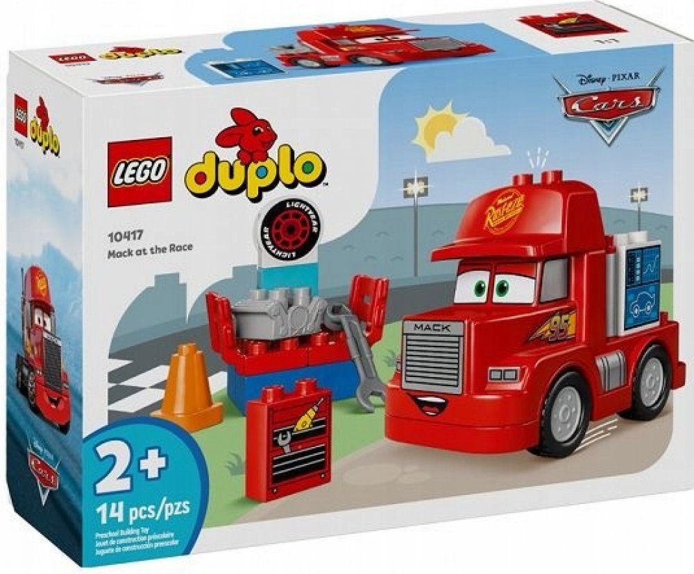 LEGO 10417 - Mack na závodech z produktové řady LEGO DUPLO CARS - Dětské plastové kostky v krabici.