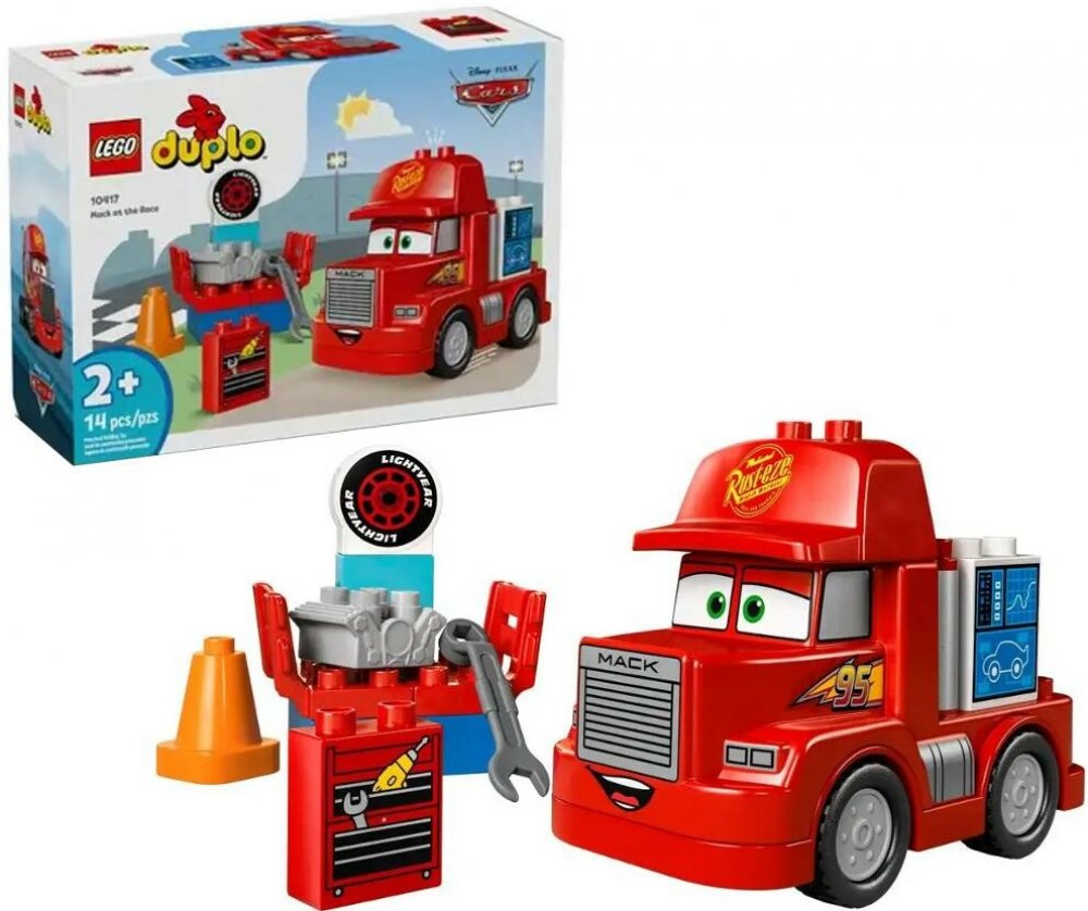 Inspirujte malé fanoušky vozidel od 2 let stavebnicí Mack na závodech s velkým červeným náklaďákem z filmů Auta z dílny studia Disney a Pixar. Malé děti pomohou transportéru Mackovi připravit součástky pro Bleska McQueena, který se zanedlouho zastaví v boxech. Vytuní jeho nový motor hasákem. Pak Mackovi pomůžou na počítači zkontrolovat informace o Bleskovi, aby byl v dokonalé kondici – jedině tak může zvítězit nad ostatními!