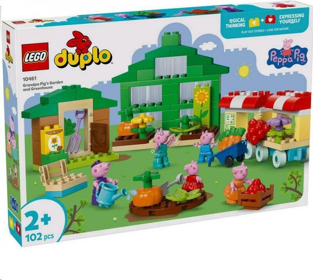 Ponořte se s malými dětmi do kreativního hraní se stavebnicí Dědečkova zahrada a skleník (10461). Tato hračka s motivem přírody pro děti od 2 let podporuje nápadité hraní, při kterém děti pomůžou své oblíbené televizní rodince pěstovat a sklízet ovoce a zeleninu ze zahrádky. Tato stavebnice s 5 figurkami – prasátkem Peppou, Tomem, maminkou, tatínkem a dědečkem – malým dětem přinese spoustu možnost...