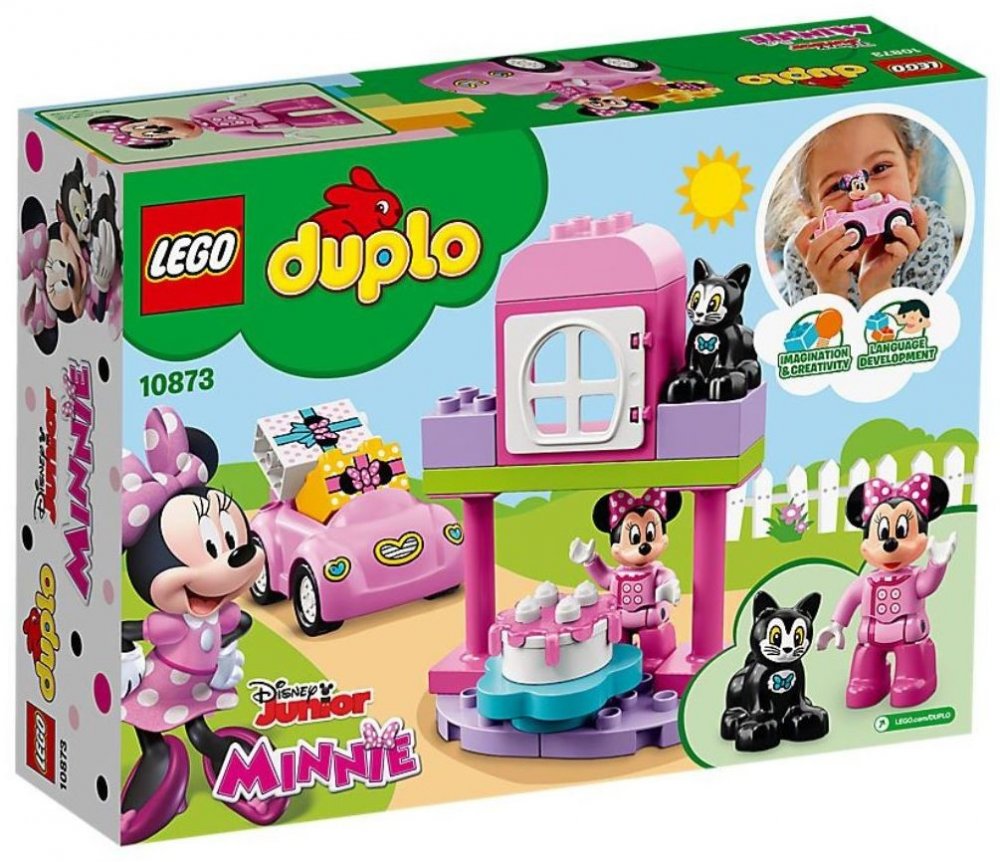 Malé Disney fanynky rády pomůžou Minnie Mouse oslavit narozeniny ve velkém stylu se sadou 10873 Minnie a narozeninová oslava od LEGO® DUPLO®! Hrajte si s nimi – přijeďte s Minnie na oslavu k narozeninovému domku v rozkošném růžovém autíčku. Kocour Figaro už se nemůže dočkat, až to všechno vypukne. Tato LEGO DUPLO sada je ideální pro nikdy nekončící hraní na téma oslavy narozenin a obsahuje obrovský sestavitelný narozeninový dort a navíc 2 kostky jako dárky. Obsahuje LEGO DUPLO figurku: Minnie Mouse, a navíc figurku kocoura.