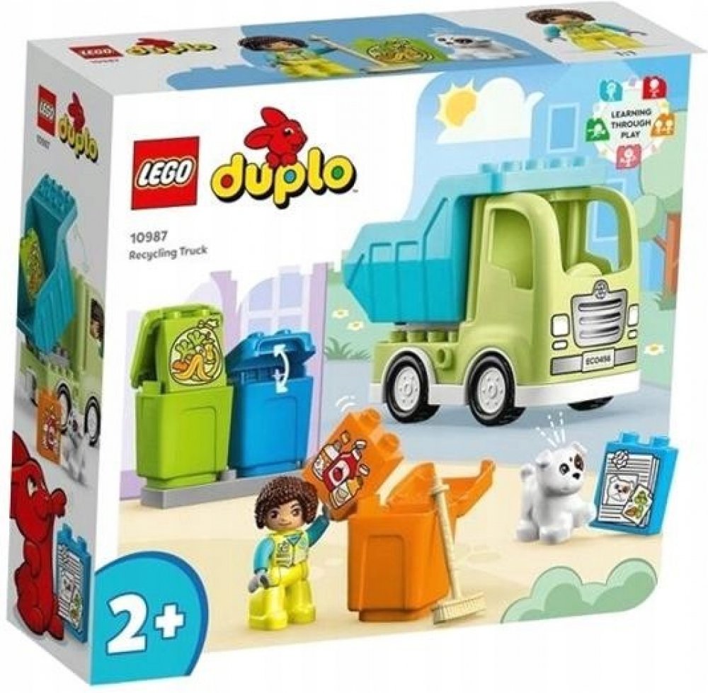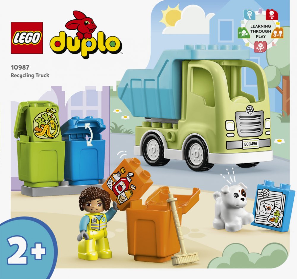 • Součástí je náklaďák LEGO® DUPLO®, 3 popelnice, 1 figurka pracovníka a štěně