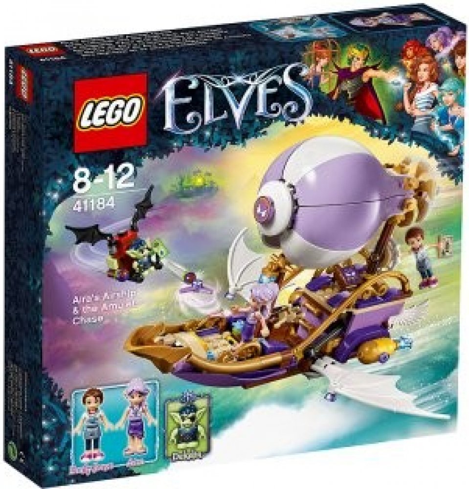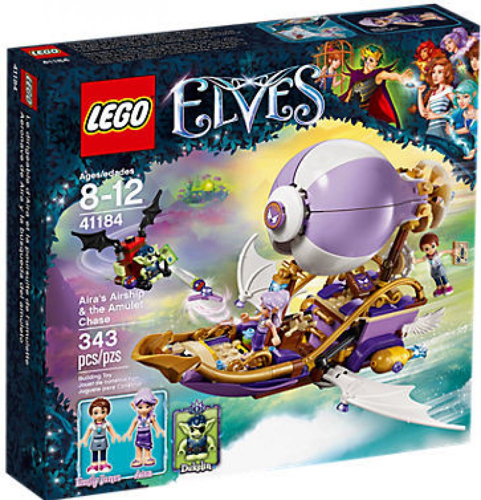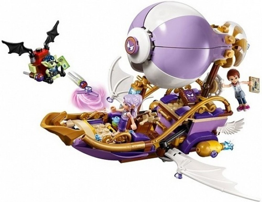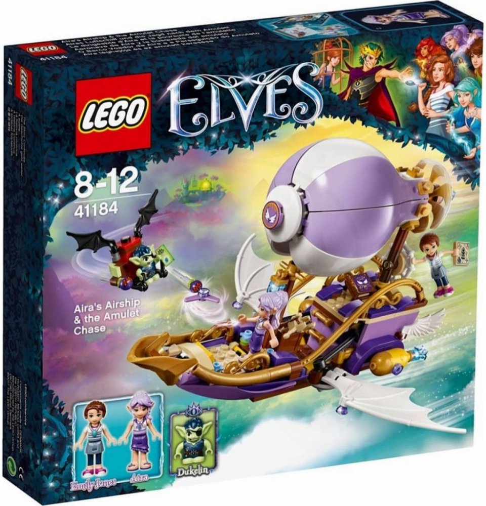 Připoj se k napínavým novým dobrodružstvím ve světě Elvendale, kde se Emily Jonesová a větrná elfka Aira Ševelilka snaží najít Emilin ztracený amulet a také její sestru, Sofii Jonesovou. Létej v Aiřině vzducholodi s otáčecí vrtulí, prostorem pro dvě minifigurky-panenky, roztažnými křídly a kuší, a vyhni se skřetovi Dukelinovi na jeho skřetím kluzáku s pohyblivými křídly, vystřelovači zlých semínek a otevíracím poklopem s malým úložným prostorem. Součástí sady jsou dvě minifigurky-panenky a navíc skřet.