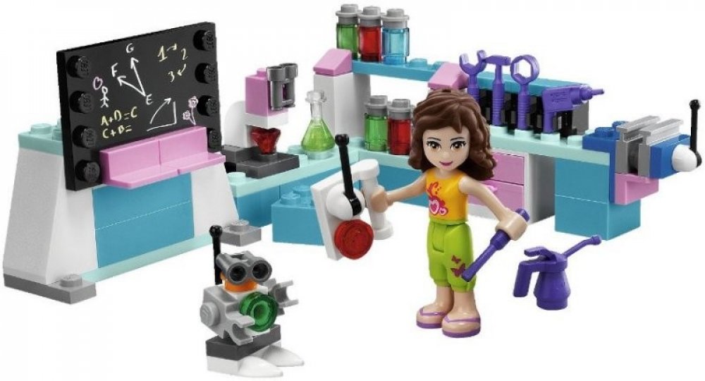 Lego Friends 3933 Olivia ve svojí dílně Novinka pro děvčata! Olivia ráda experimentuje se svými hračkami a vymýšlí nové výtvory. Napíše si svůj plán na tabuli, pozoruje krystaly pod mikroskopem a používá nejrůznější nářadí s pomocí svěráku či pracovního ponku. Když má hotovo, uloží svůj výrobek do regálů k ostatním. Vyprav se za Olivií do její dílny a pomoz jí sestavit dálkově ovládaného robota. M...