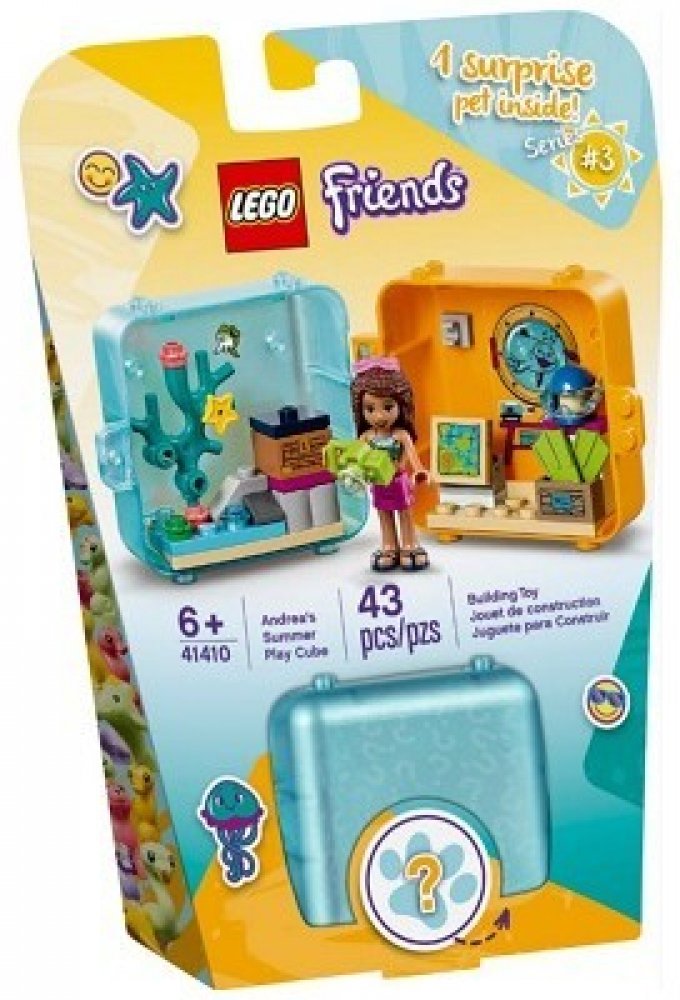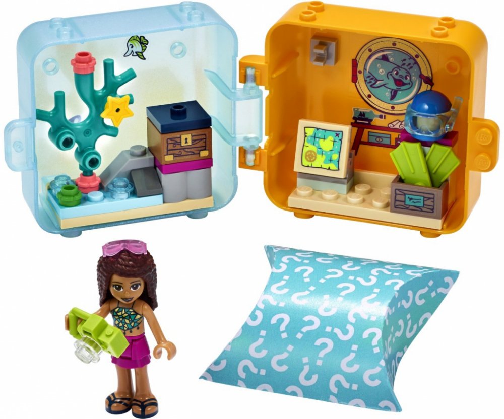 - Herní boxíky inspirované létem přináší velkou porci zábavy v malém balení. Tento obsahuje LEGO® Friends minipanenku Andreu a tajemného mořského živočicha. Sada nabízí spoustu kreativních prvků a arch se samolepkami, díky kterým si mohou děti boxík přizpůsobit podle svých představ.