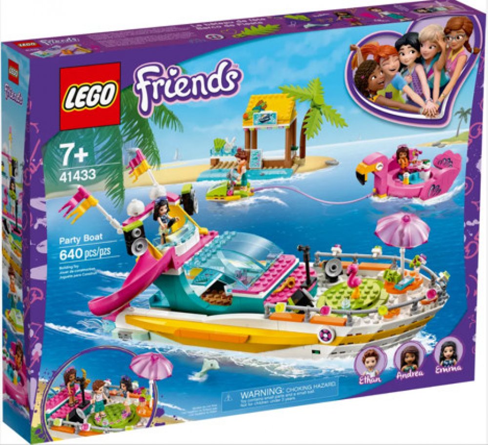Párty loď (41433) vezme děti na pláž, kde se ponoří do dlouhých hodin hraní a legrace. Model lodě doplňují 3 sestavitelné minipanenky a spousta hraček a příslušenství, s nimiž si děti užijí nejedno parádní letní dobrodružství.
