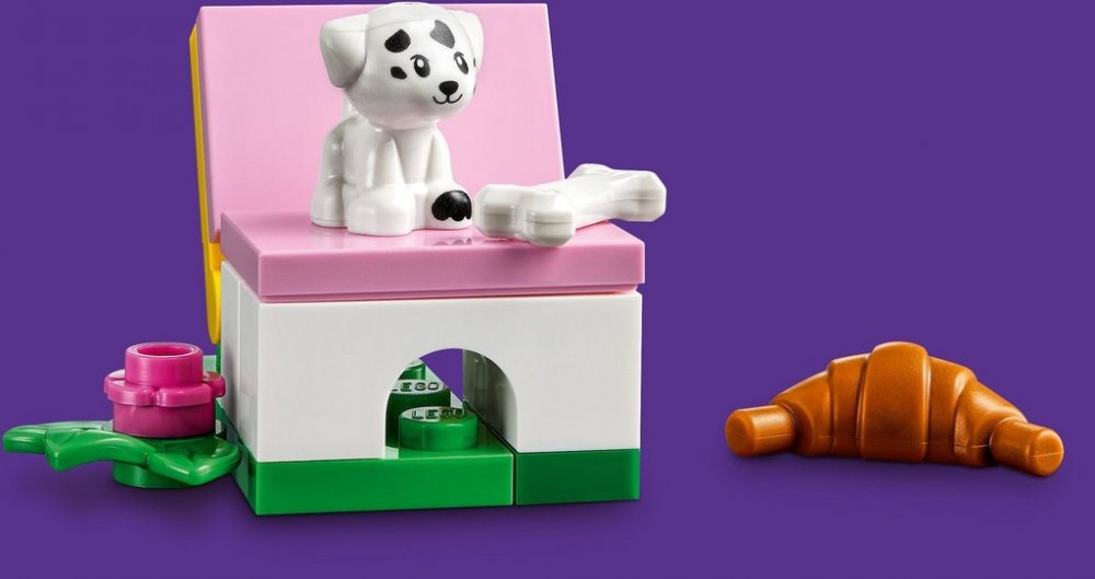 Tato stavebnice od LEGO® Friends obsahuje 2 minipanenky, figurku štěňátka a model auta. Nechybí ani nabíjecí stanice s větrnou turbínou a místo na piknik.