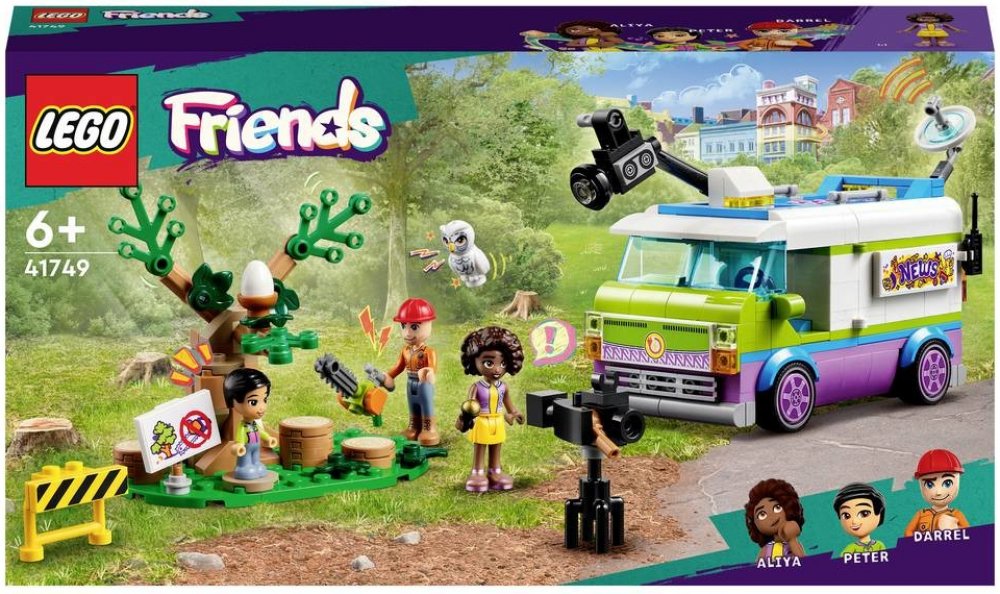 Funkce Reporter – zábava pro děti od šesti let – děti, které jsou zapálené pro ochranu přírody, se mohou bavit hodiny s LEGO® Friends Reportérskou dodávkou (41749) 3 postavičkami a doplňky - sada obsahuje postavy LEGO® Friends: Aliya, dřevorubec Peter a Darrel, který protestuje proti kácení stromu Natáčení a hlášení novinek - děti mohou tvořit nekonečné množství příběhy v redakci s příslušenstvím včetně vysílačky, mikrofonu, sovy s vajíčkem, nápisu a motorové pily Odehrajte příběh – děti si mohou při hraní užívat nahrávání zpráv.