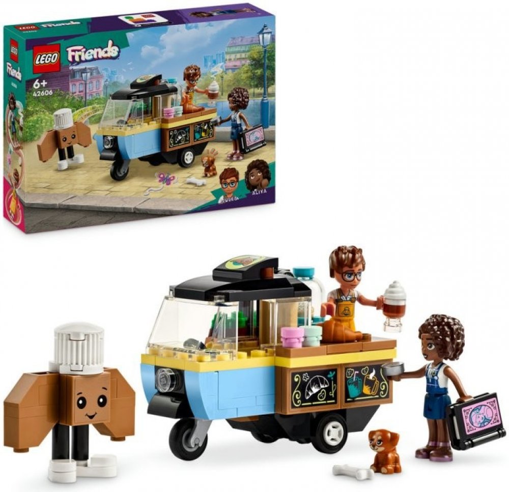 Darujte malým stavitelům od 6 let inspirativní stavebnici LEGO® Friends (42606) Pojízdný stánek s pečivem. Děti, které mají rády hraní rolí, povypráví příběh o tom, jak Aliya navštíví stánek s pečivem se svou fenkou Airou. Součástí stavebnice jsou 2 minipanenky, pejsek, stánek, maskot pekárny a doplňky.