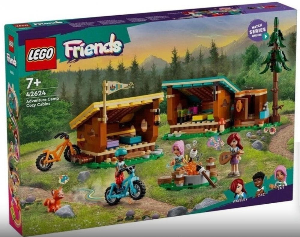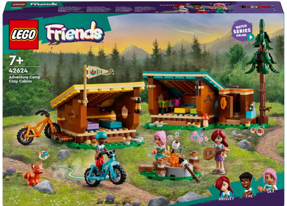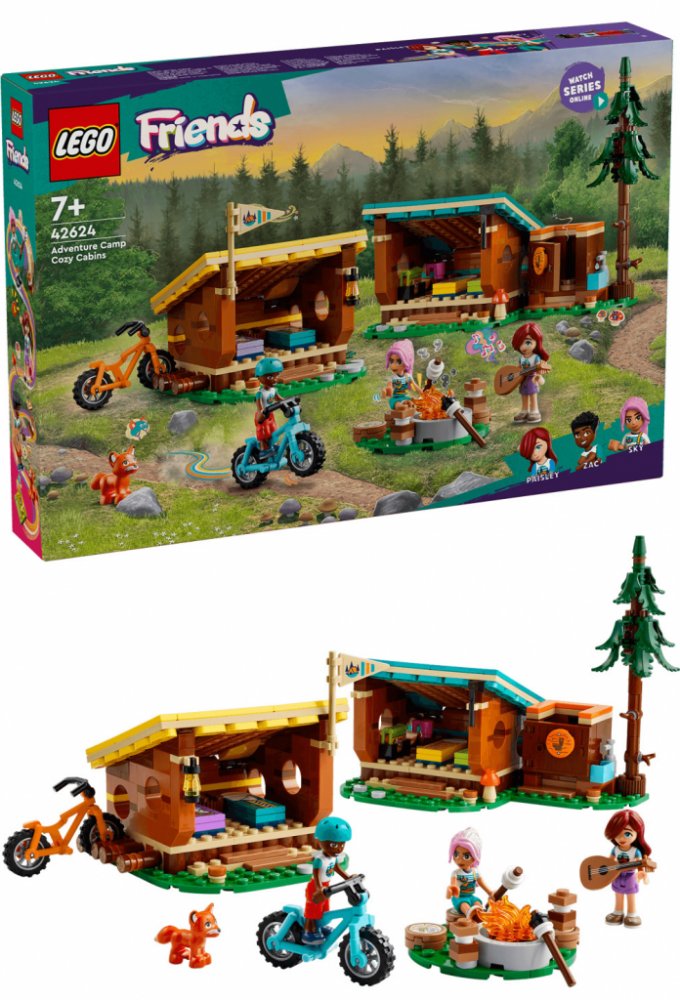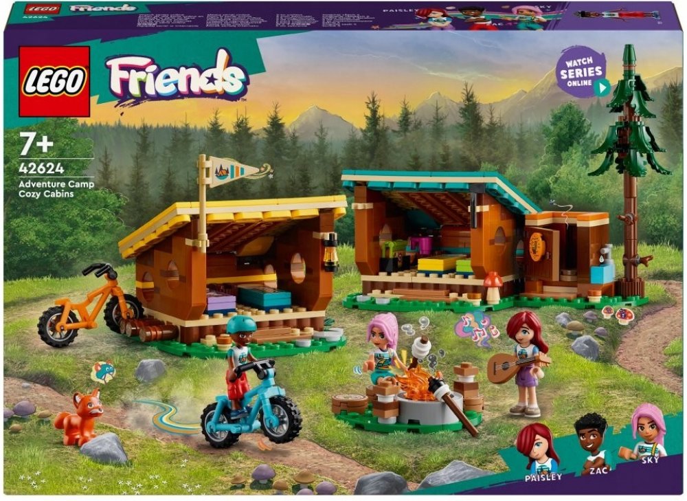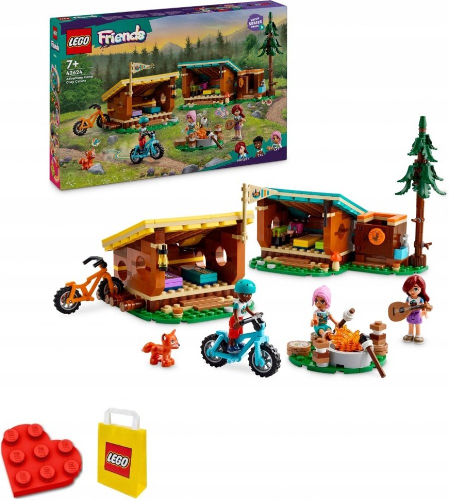 LEGO 42624 - Útulné chatky na dobrodružném táboře z produktové řady LEGO FRIENDS - Dětské plastové kostky v krabici.