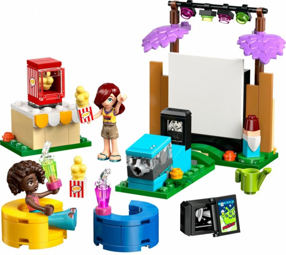 S tímto dárkem pro děti si užijete spoustu kouzelných filmových nocí! Holky, kluci a milovníci filmů od 6 let si vymyslí vlastní senzační příběhy se stavebnicí Filmový večer s kamarády. Zábavná stavebnice obsahuje 2 minipanenky LEGO Friends a spoustu doplňků pro kreativní hraní. Světla, kamera, přátelství! Děti si vymyslí příběhy o kamarádkách Paisley a Aliyi, které si užívají filmový večer na Paisleyině zahradě. Zasuňte film do projektoru a stisknutím světelné kostky rozsviťte obraz na velké obrazovce. Objevte spoustu příslušenství, včetně stroje na popcorn s páčkou, díky které bude popcorn "pukat"! Mezi další doplňky patří krabička na popcorn, nápoje, komiks a 2 pohodlné sedací vaky.