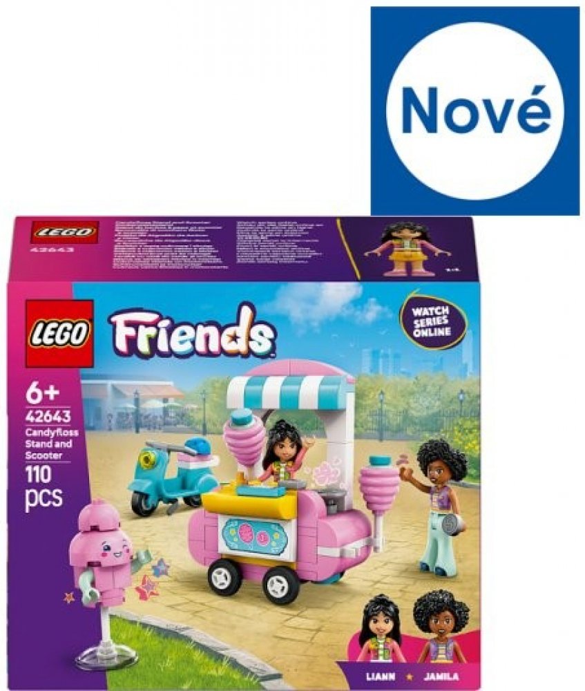 LEGO 42643 - Stánek s cukrovou vatou a skútr z produktové řady LEGO FRIENDS - Dětská plastová stavebnice v krabici.