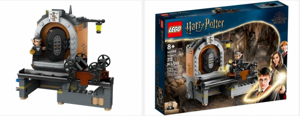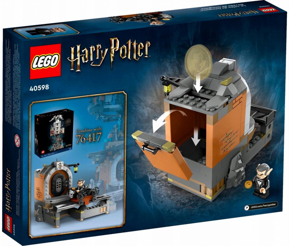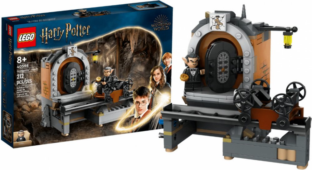 - LEGO® Harry Potter™ (40598) Trezor v Gringottově bance – Postavte si Trezor v Gringottově bance z kostek LEGO s otevíracími dveřmi, odnímatelnou zadní stranou, trezorovým vozíkem, kolejemi a minifigurkou skřeta