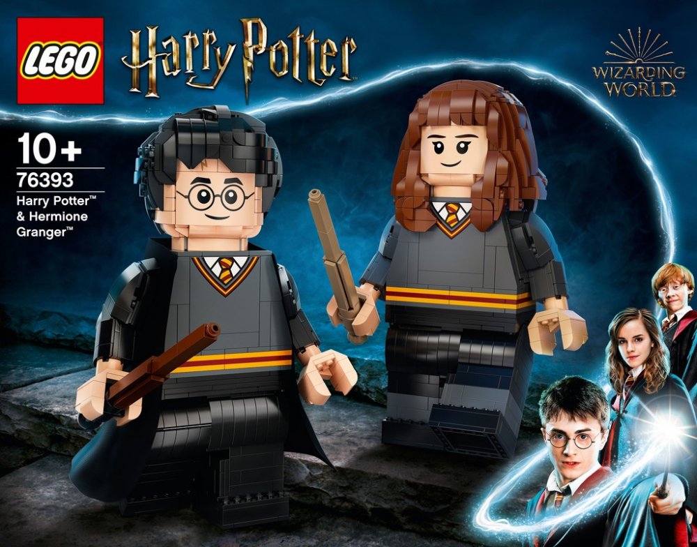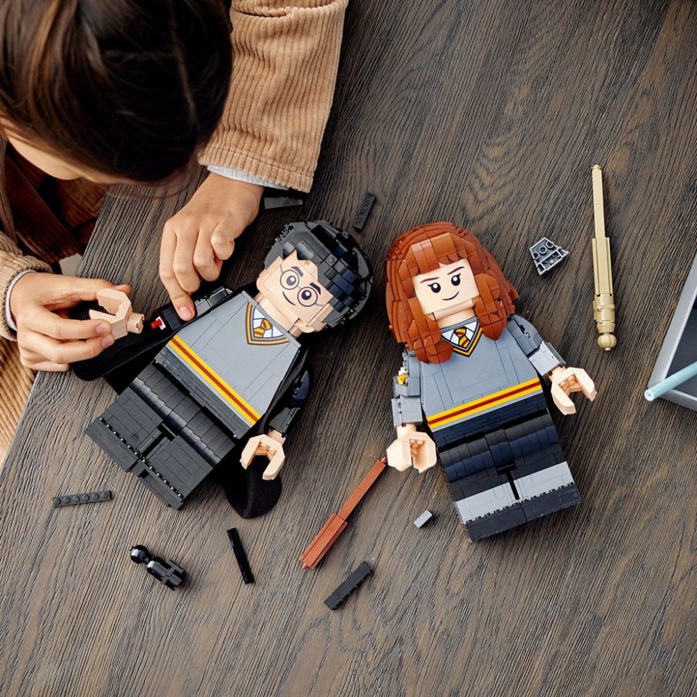 Děti si užijí velikou porci kouzelné zábavy s modely Harryho Pottera a Hermiony Grangerové z kostek. Obě figurky jsou 26 cm vysoké a lze s nimi pohybovat stejně jako s běžnými LEGO minifigurkami – hýbou rukama, nohama, trupem a figurka Harryho Pottera má otočnou hlavu. Harry je vybaven látkovou róbou, kterou lze sundat, a obě postavy mají hůlky z kostek. Ty inspirují děti k přehrávání spousty magických příběhů. Jakmile nebudou hrdinové středobodem napínavých dobrodružství, děti mohou 2 kamarády z Bradavic vystavit ve svém pokoji. Díky dvěma návodům na stavění si zábavu mohou užívat zároveň dva stavitelé.