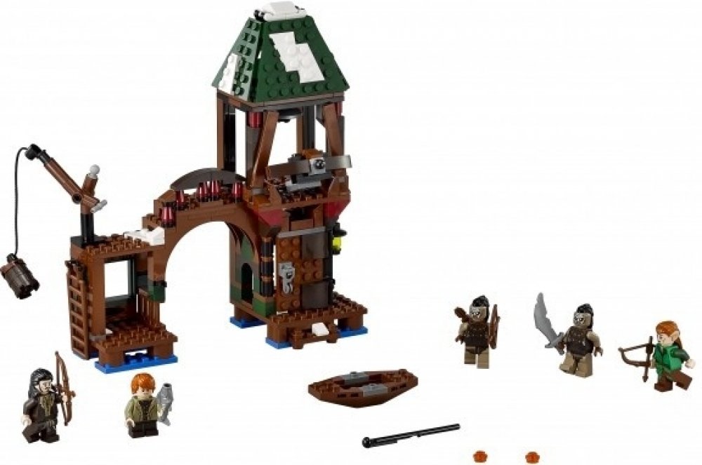 Jezerní město se ocitlo pod náporem hrozivých orků. Dokážete pomoci neohroženým hrdinům a ubránit je? Sada obsahuje 5 minifigurek s různými zbraněmi: Bain, Bard, Tauriel a 2 Orkové.