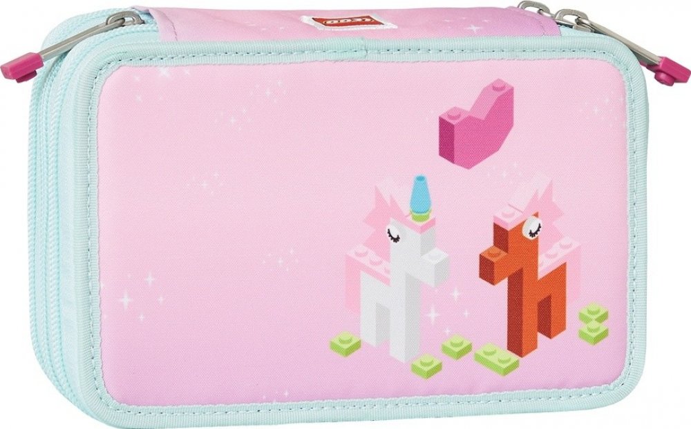 LEGO penál s náplní obsahuje všechny potřebné psací potřeby do školy. Penál je dodáván s náplní: 2 grafitové tužky, 10 barevných pastelek, 4 široké barevné pastelky, guma na gumování, ořezávátko, rovné a trojúhelníkové pravítko. Penál obsahuje rozvrh hodin v průhledné kapse a všitou vnitřní jmenovku. Je vyrobený z odolného materiálu bez použití PVC. K dostání v mnoha oblíbených LEGO motivech. Ideá...