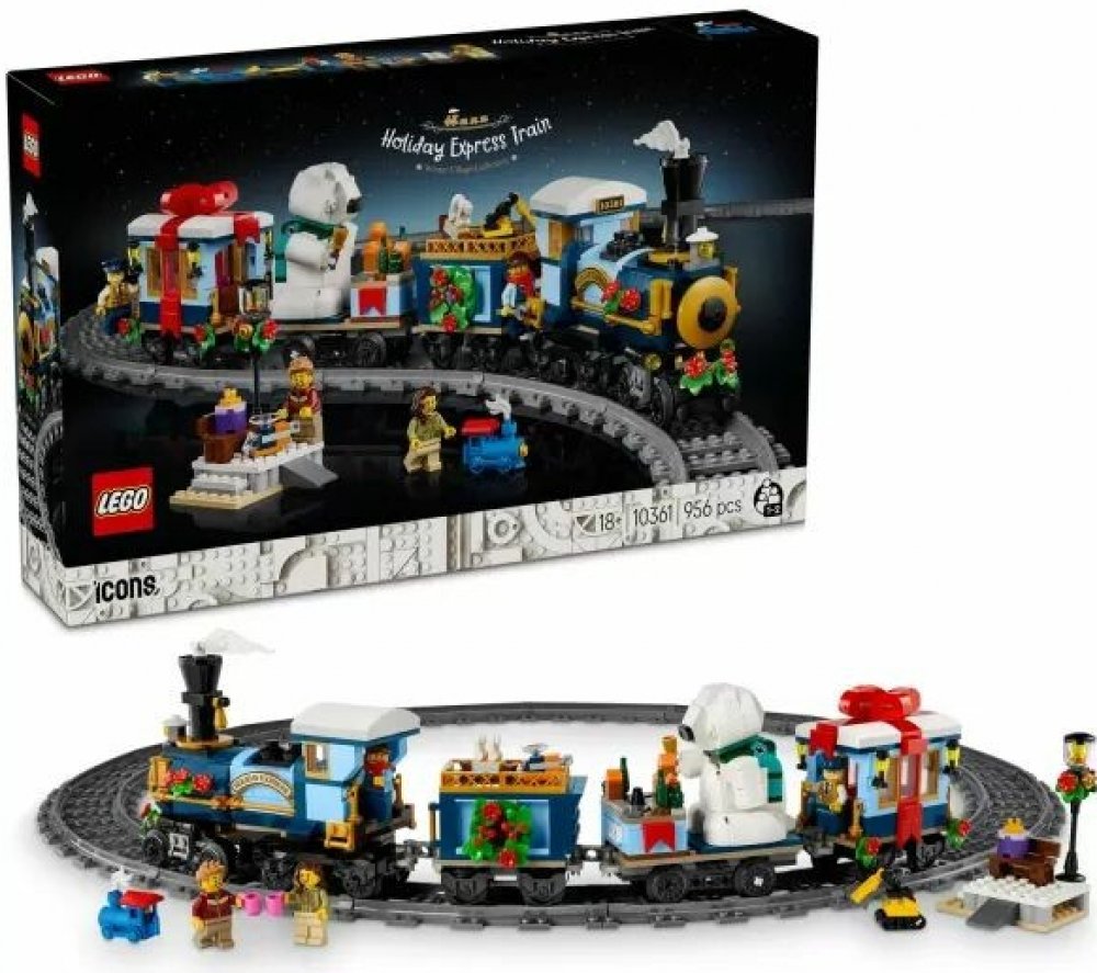 Stavebnice LEGO® Icons (10361) Vánoční expres je tu! Postavte si lokomotivu se zvedajícím se komínem, vozem na uhlí, plošinovým vozem s ledním medvědem zvonícím na zvonek a služebním vozem s vybaveným interiérem. Tato stavebnice pro dospělé obsahuje také 4 minifigurky a nástupiště pro cestující s lavičkou a pouliční lampou. Nechybí miniaturní hračky, včetně prvního 3D tištěného vláčku. Postavte dr...