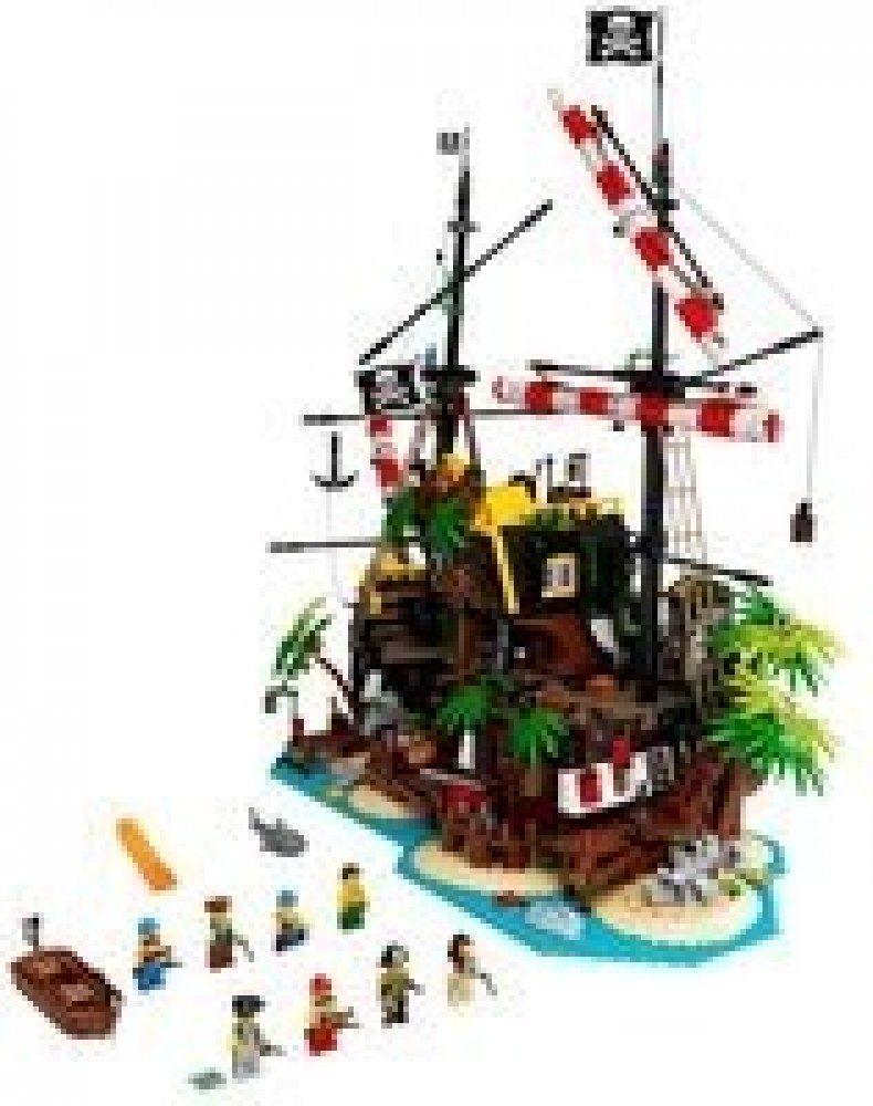 Prozkoumejte propracovanou kapitánskou kajutu, spižírnu, kuchyň, ložnici, sklad, farmu, latrínu, vězeňskou celu, hospodu a ukrytý poklad, a navíc spoustu zábavných doplňků, 8 minifigurek pirátů, sadu figurek zvířat a 2 figurky kostlivců, které přidají do hry pořádnou porci akce. Model ostrova lze rozdělit napůl a celý přeskládat. Vrak lodi můžete přestavět na legendární pirátskou loď Černomořskou barakudu, která brázdila LEGO vody od roku 1989.