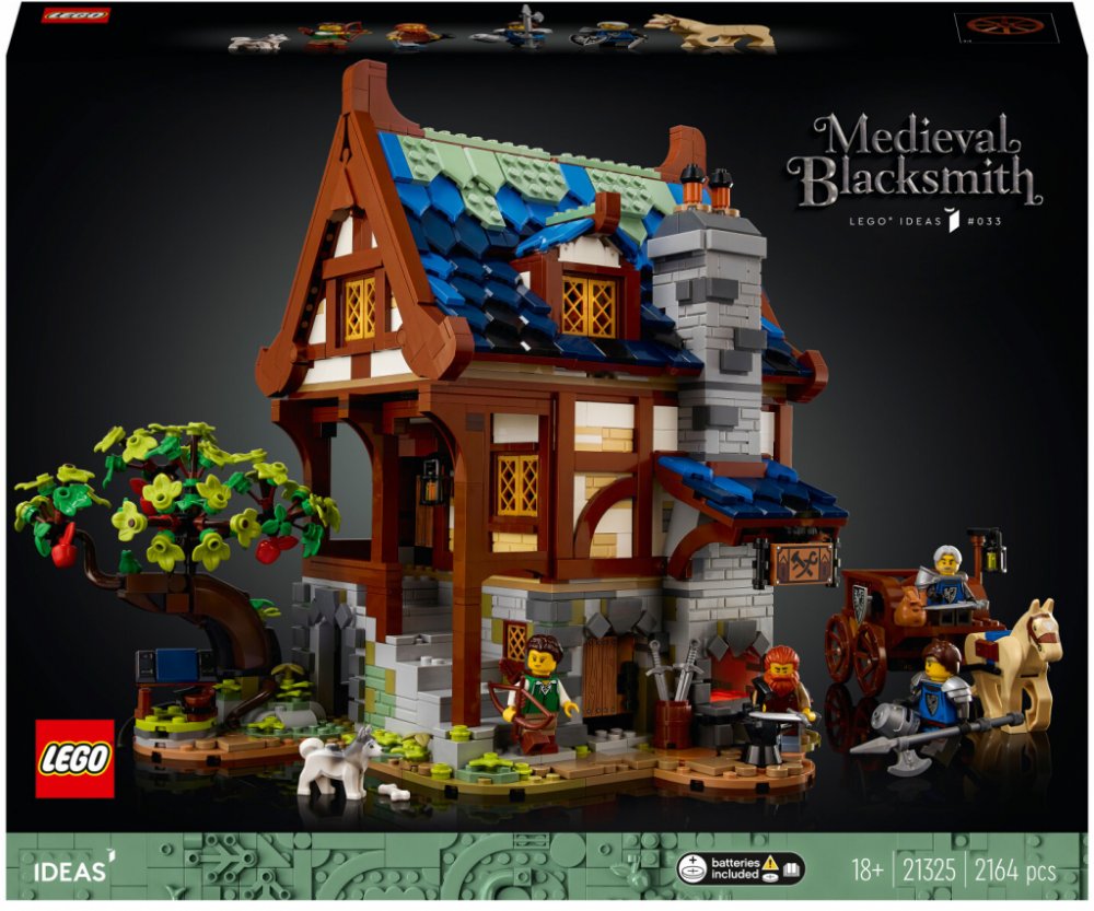 LEGO® Ideas 18 let 2164 ks stavby Ideas pro dospělé LEGO® 2021 Jen společně Dlouhodobý projekt Pouze na polici 1 model 27 × 32 × 21 cm Kovář, lučištník, rytíři 4 ks