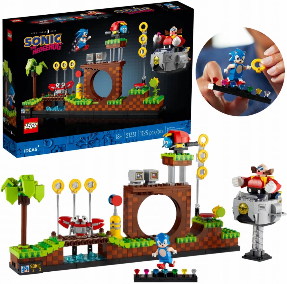 Uspořádejte si úroveň podle sebe a vdechněte jí život s minifigurkou hrdiny Sonic the Hedgehog a figurkami Dr. Eggmana, Moto Buga a Crabmeata. Samozřejmostí je podrobný návod a – stejně jako v opravdové hře – budete po cestě sbírat smaragdy chaosu. S podstavcem pro 7 smaragdů a minifigurku Sonica bude barevný výstavní kus kompletní. Zkrátka a dobře: Lepší nostalgický dárek pro sebe nebo fanoušky kultovní hry nenajdete.