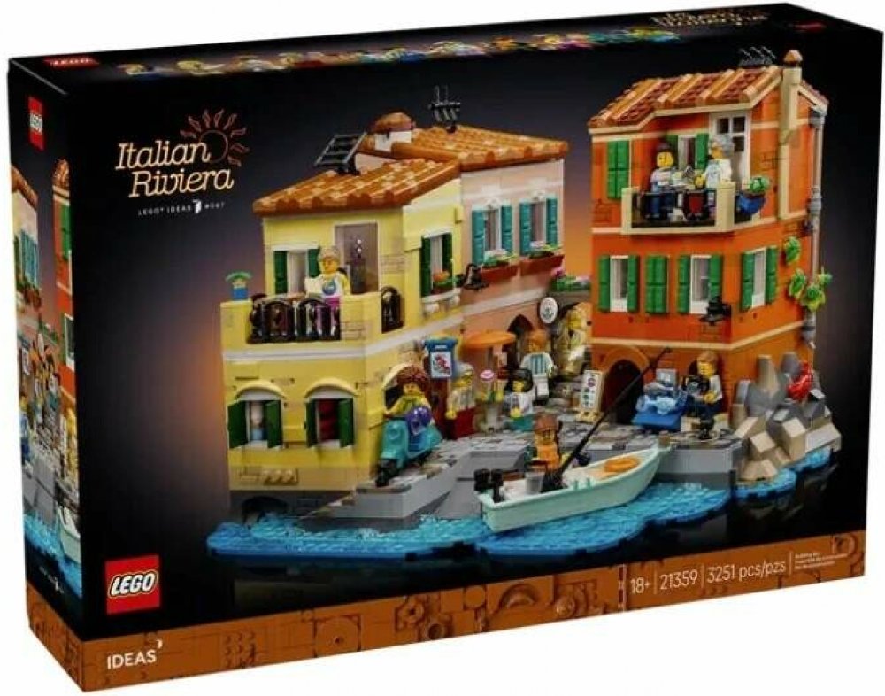 Odejměte střechy a horní patra tří budov a prohlédněte si jejich detailní interiéry. Najdete tu obchod se zmrzlinou, obchod s potápěčským vybavením a rybí trh a nad nimi domy prodavačů. Přidejte 10 minifigurek LEGO a postavte si autentické scény: rybáře na lodi ve Středozemním moři, nonnu, která ukazuje vnukovi, jak se vyrábějí těstoviny trofie a focaccia, kritika ochutnávající místní kuchyni, řidiče skútru projíždějícího po ulici... A pozor na koťátko, které si v uličce pochutnává na ukradené rybě! Tato sběratelská stavebnice LEGO Ideas obsahuje 3251 dílků.
