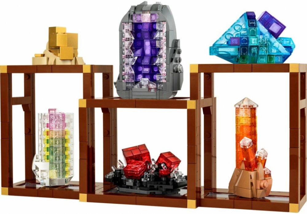 - Jedinečná bytová dekorace – Vzdejte hold kráse přírody se stavebnicí LEGO® Ideas Sbírka minerálů, která obsahuje barevné modely 6 minerálů a 3 police