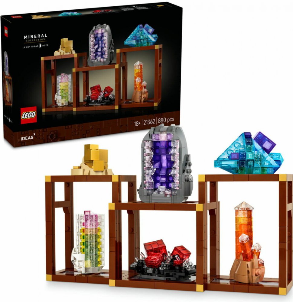 Vystavte si doma pestrobarevné minerály v podobě stavebnice LEGO® Ideas (21362) Sbírka minerálů pro dospělé. Tato sběratelská stavebnice představuje skvělý dárek pro sběratele drahých kamenů a milovníky přírody a obsahuje modely 6 minerálů z kostek a sestavitelné police, ze kterých si vytvoříte poutavou dekoraci.