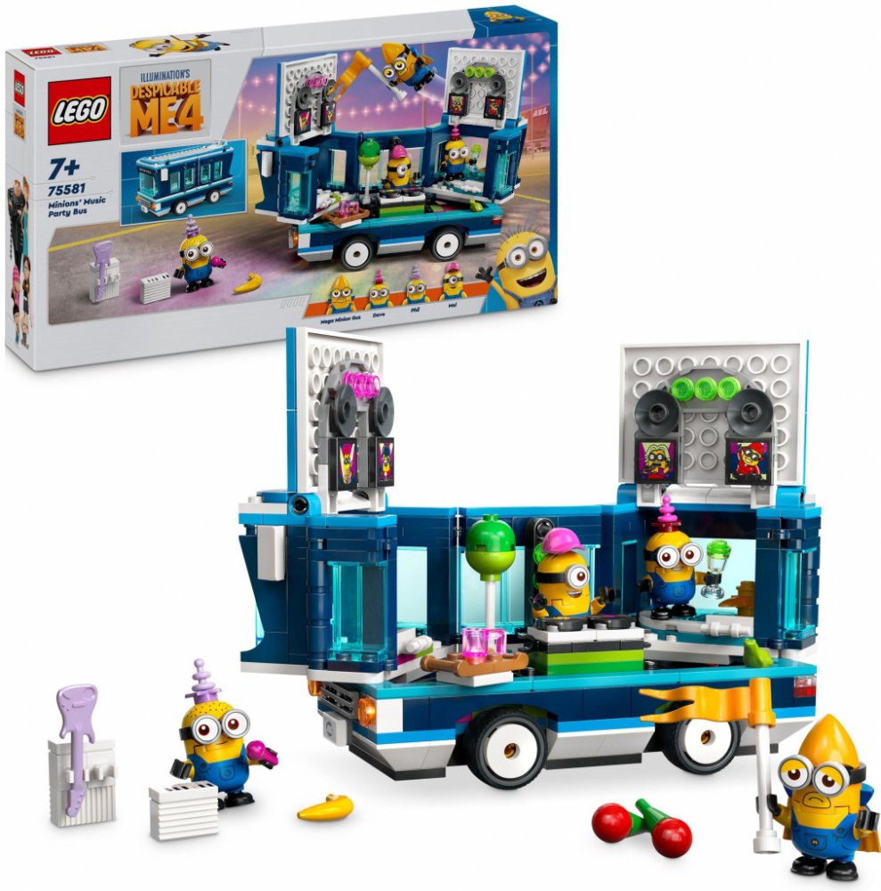 Dopřejte fanouškům hraček s mimoni a malým milovníkům aut stavebnici 2 v 1 LEGO® Já padouch 4 (75581) Mimoni a hudební párty autobus. Otevřete model autobusu a odhalte parádní párty stavebnici s mimoni. Tato kreativní stavebnice poslouží jako skvělý dárek pro děti od 7 let a fanoušky filmu Já padouch 4 od studia Illumination.