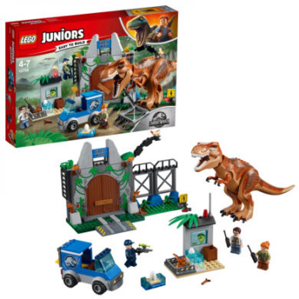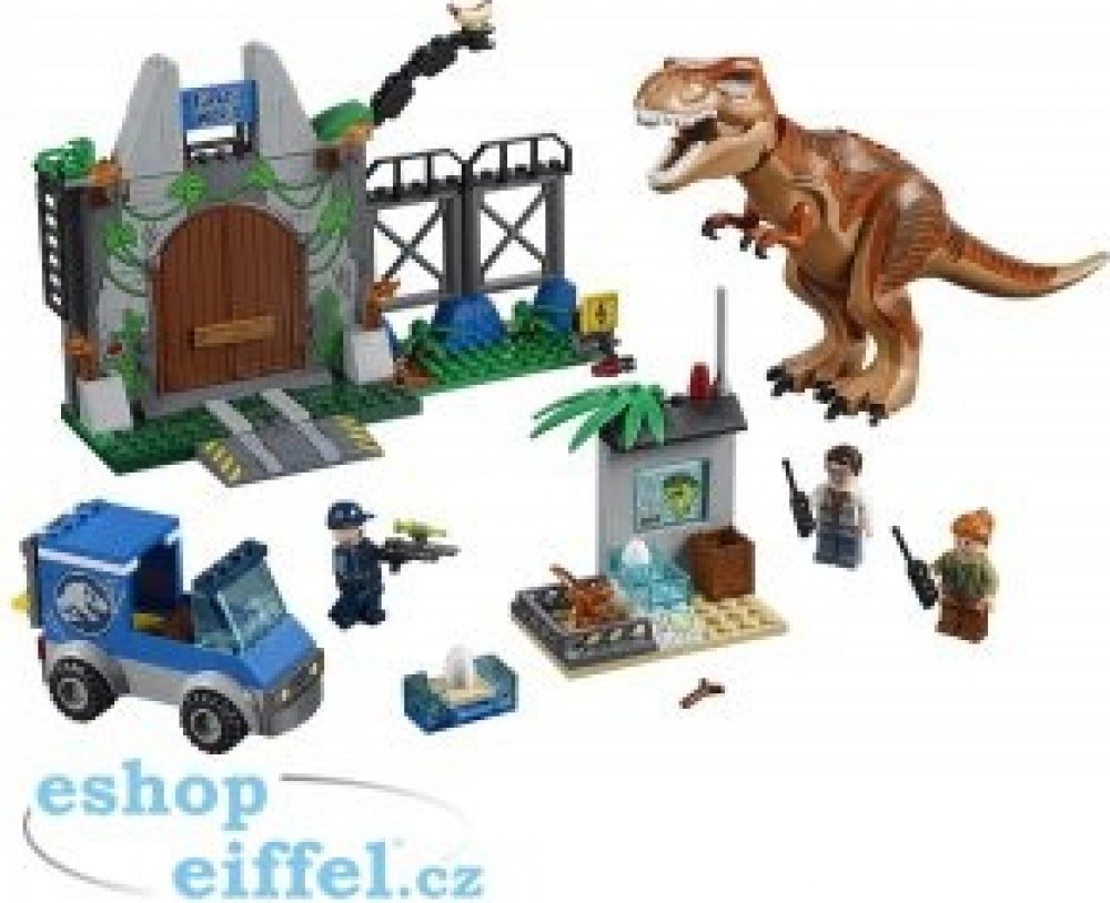 Ukažte svému dítěti, jaká strhující dobrodružství na něj čekají v Jurském světě LEGO® Juniors! Součástí této strhující sady Útěk T. rexe je pohyblivý skládací tyrannosaurus rex s otevírací tlamou, 2 základny pro rychlý začátek stavění s bránou, rozbitný plot a zeď, malá vědecká základna a náklaďák s podvozkem pro rychlý začátek stavění. Tato zábavná stavebnice obsahuje také jednoduchý návod na stavění i ke hře, který pomůže budovat sebevědomí dětí od 4 do 5 let. Obsahuje minifigurky Claire, hlídače a vědce a figurky tyrannosaura a dinosauřího mláděte.
