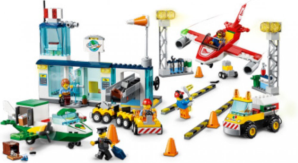 - Obsahuje 5 minifigurek: 2 piloty, 2 letištní pracovníky a turistu.