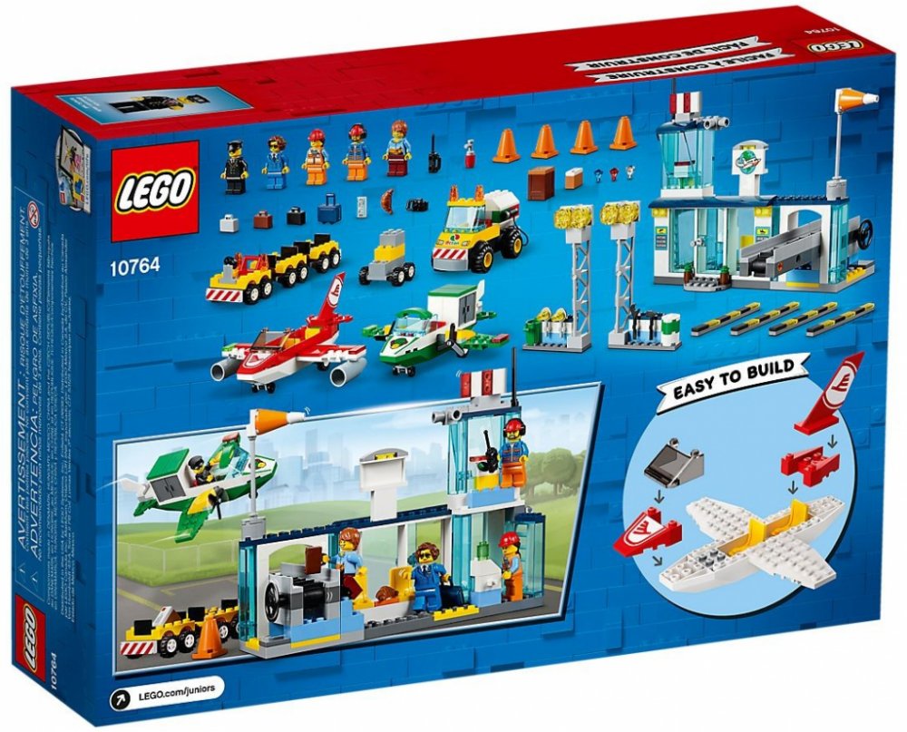 Vydej se za dobrodružstvím se sadou LEGO® Juniors 10764 Hlavní městské letiště! Tato zábavná sada obsahuje snadno sestavitelný letištní terminál s podložkou pro rychlý začátek stavění a zdí, kontrolní věž a funkční pás dopravníku. Najdeš v ní také zavazadlový vozík se 2 přívěsy a 2 letouny se základními deskami pro rychlý začátek stavění a prostorem pro piloty, a k tomu navíc světlomet s prostorem pro nářadí a náklaďák s palivem s modulem na čerpání paliva. Všechny sady LEGO Juniors obsahují jednoduchý návod na stavění i ke hře, který pomůže budovat sebevědomí malých dětí od 4 let. Obsahuje 5 minifigurek.