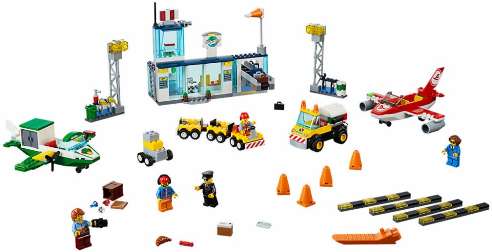 - Obsahuje letištní terminál s deskou a zdí pro rychlý začátek stavění, otevírací dveře, kontrolní věž, radar, větrný pytel a funkční pás dopravníku, světlomet s prostorem pro nářadí a 4 sestavitelné přistávací dráhy.