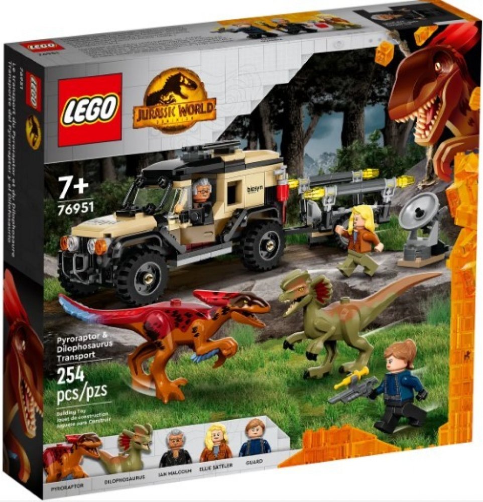 Se stavebnicí Přeprava pyroraptora a dilophosaura (76951) si děti mohou hrát na pátrání po dinosaurech v terénním autě s postavami z filmu Jurský svět Nadvláda. Vozidlo nabízí místo pro 2 minifigurky, odnímatelné zařízení na stopování dinosaurů a odpojitelný přívěs s otevírací klecí, do které se vejde figurka dinosaura. Nesmí chybět ani 3 minifigurky LEGO® – Ian Malcolm, doktorka Ellie Sattlerová ...