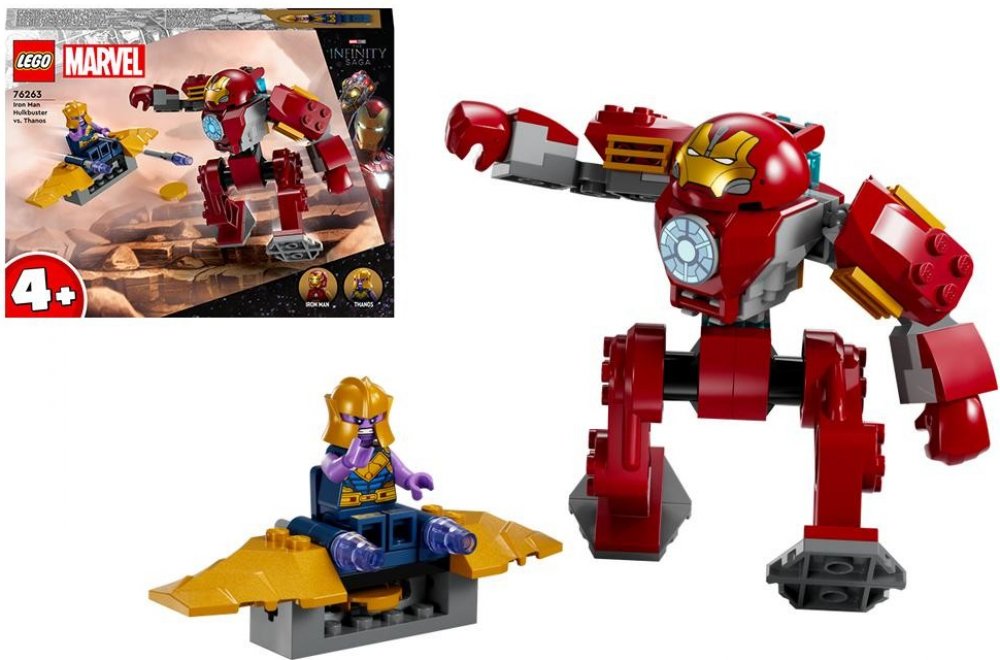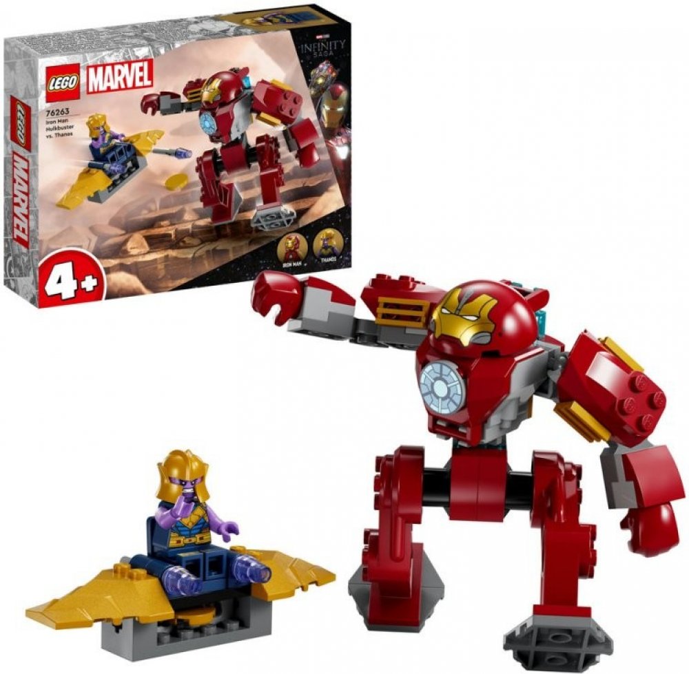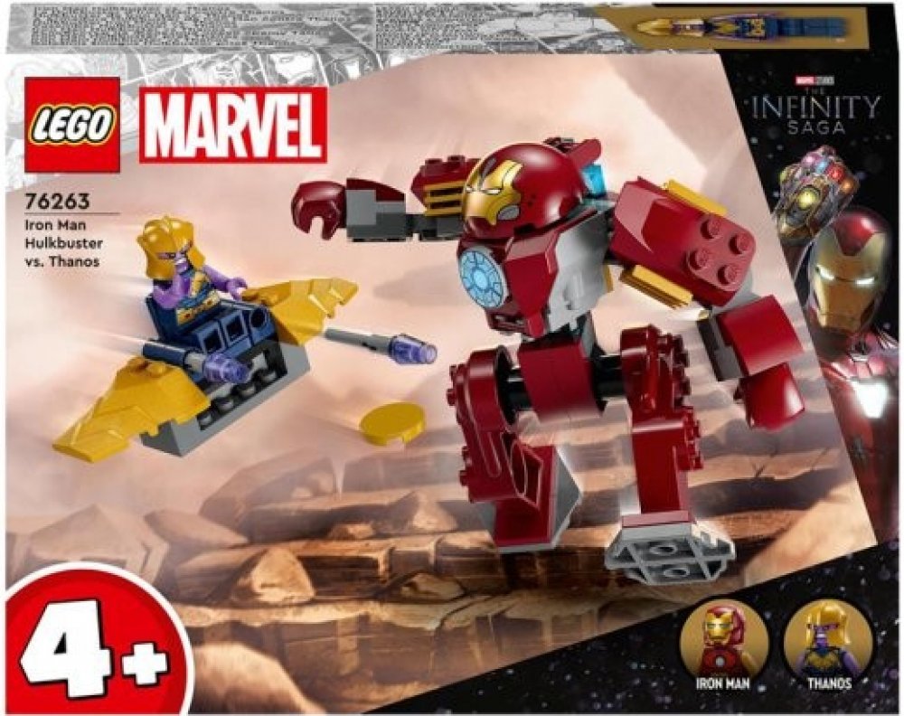 Stavebnice LEGO Marvel Iron Man Hulkbuster vs. Thanos obsahuje kultovní postavy a jejich senzační technologie v sestavitelné herní stavebnici pro děti od 4 let. Tato stavebnice inspirovaná filmem Avengers: Infinity War znázorňuje střet superhrdiny Iron Mana a jeho robota se superpadouchem Thanosem a jeho letadlem. Robot Hulkbuster je pohyblivý a má v sobě sedačku pro minifigurku Iron Mana. Letadlo obsahuje vystřelovač disků a sedátko pro minifigurku Thanose. Každý sáček v balení obsahuje kostky pro kompletní model a postavičku, které si děti mohou ihned sestavit k hraní. Barevný návod vedený příběhem slouží jako návod na stavění a hraní a 2 začátečnické kostky k nohám robota ještě více zjednoduší stavění. Pro ještě zábavnější digitální stavění umožňuje zábavná a intuitivní aplikace LEGO Builder stavitelům přibližovat, otáčet modely ve 3D a sledovat postup.