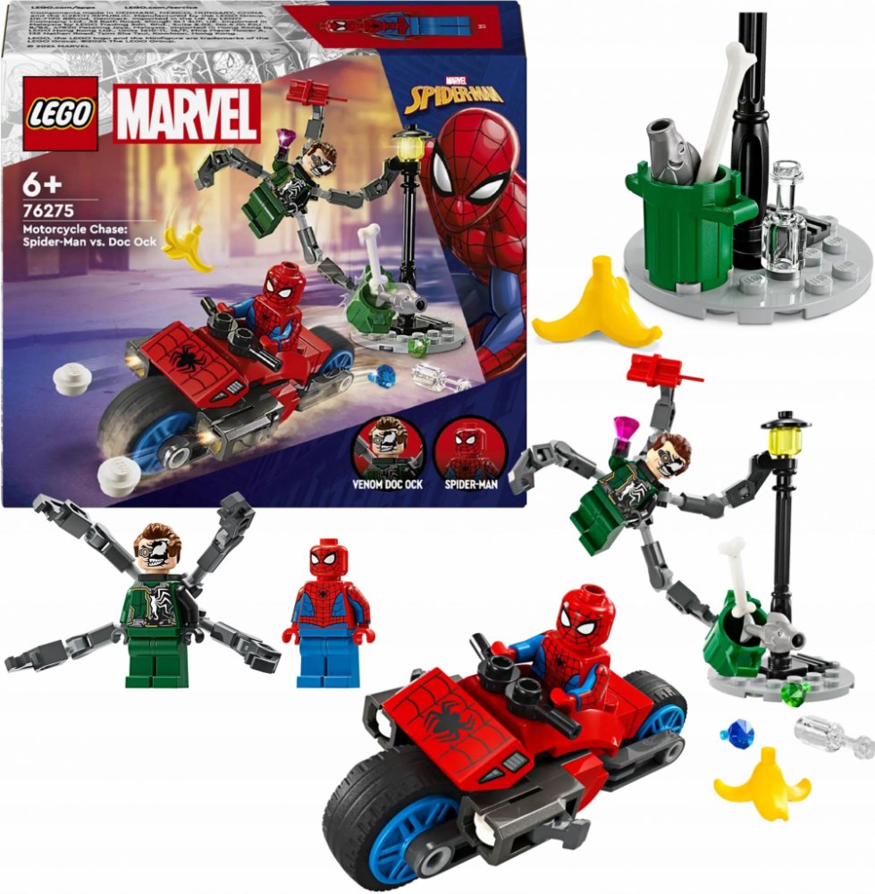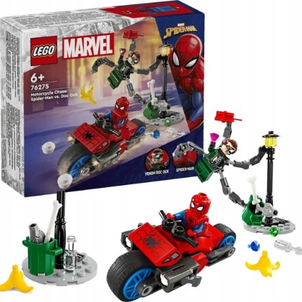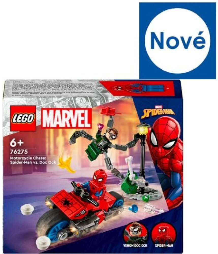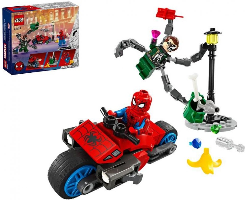 LEGO 76275 - Honička na motorce: Spiderman vs. Doc Ock z produktové řady LEGO MARVEL - Dětské plastové kostky v krabici.