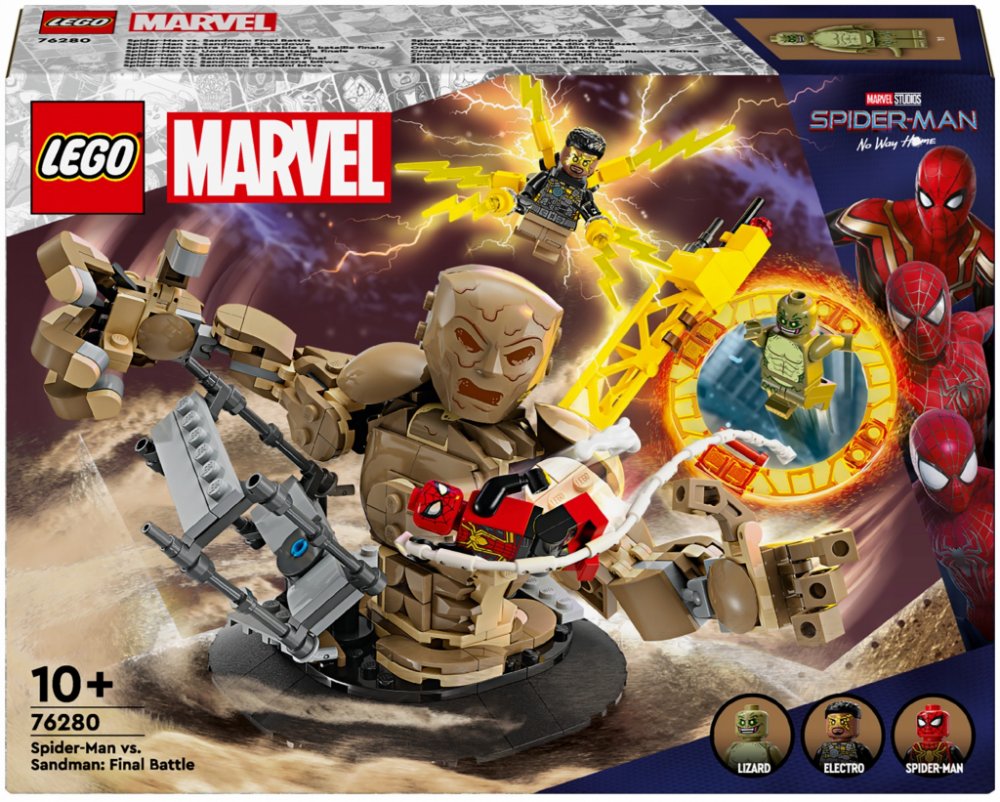 Součástí této kreativní stavebnice z řady LEGO Marvel se Spider-Manem jsou 3 padouchové: Sandman, Electro a Lizard (jedná se o zcela první stavebnici LEGO Marvel s minifigurkou Lizarda). Minifigurky lze umístit hned na několik míst v různých polohách a stavebnice tak nabízí nepřeberné možnosti hraní a vystavování.